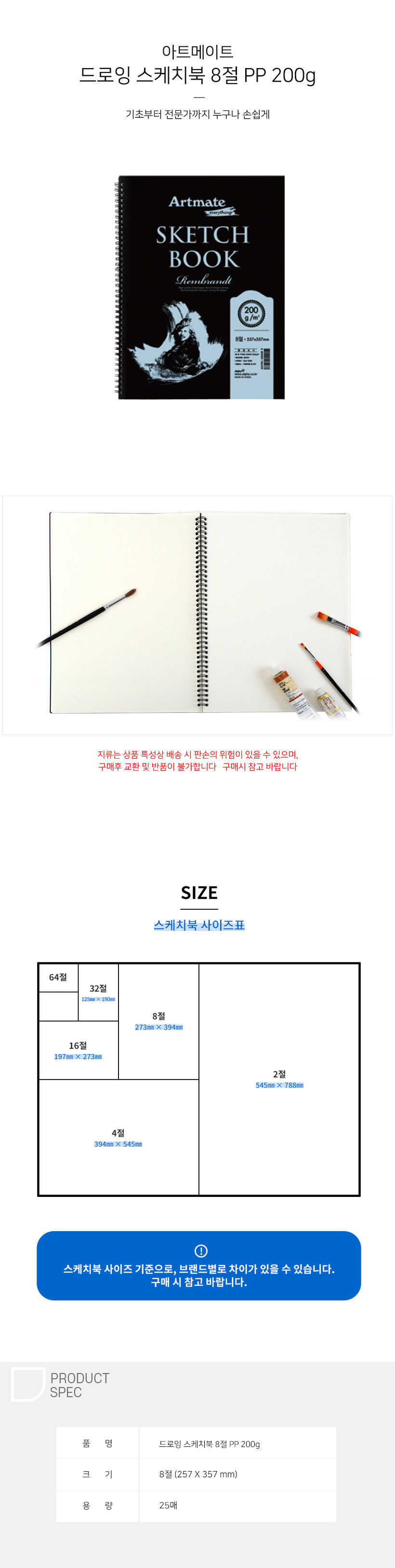 [381300] [아트메이트] 드로잉 스케치북 8절 PP 200g