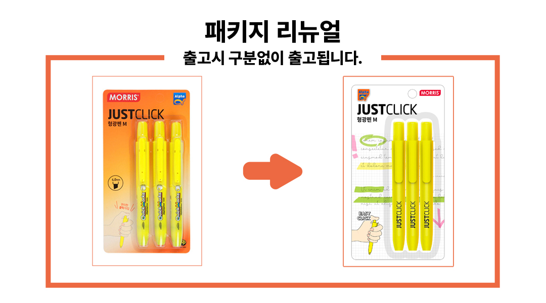 [알파] 모리스 형광펜 노크식(옐로우 3입)