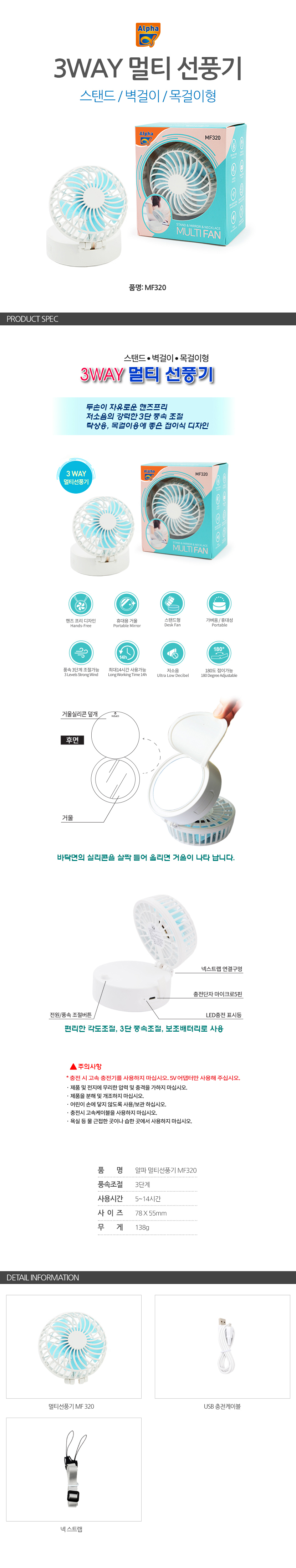 [알파] USB 멀티선풍기 MF320 (3단풍속/목걸이/스탠드/거울기능) 내가 원하는 곳 어디서나 시원하게