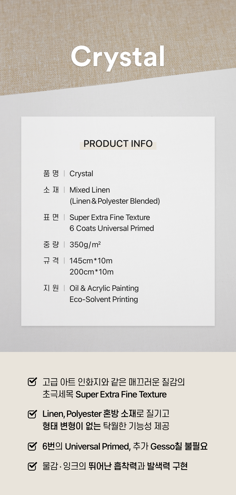 캔톤아트 Crystal 캔버스천 롤 아사혼방 초극세목 145cm*10m 350g/㎡(무료배송)