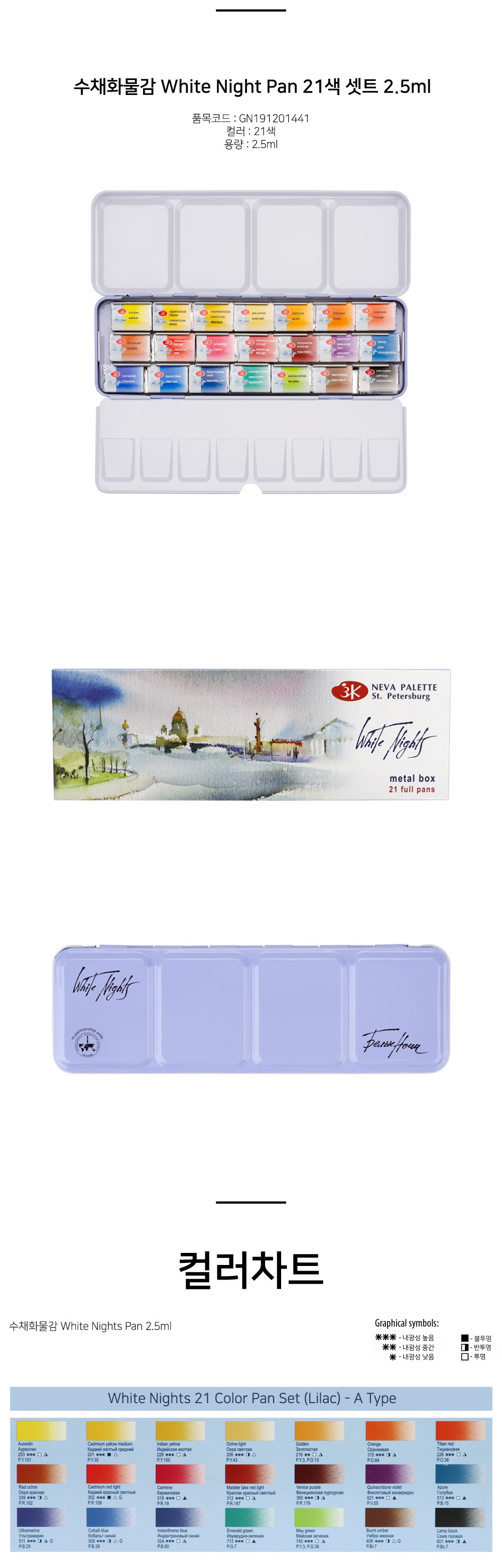 네브스카야/화이트나이츠/수채고체물감 21색/철케/GN191201441