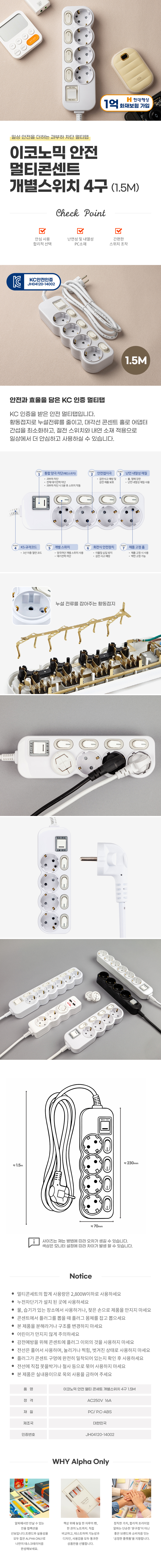[알파] 이코노믹 안전 멀티탭 개별스위치 4구 1.5M