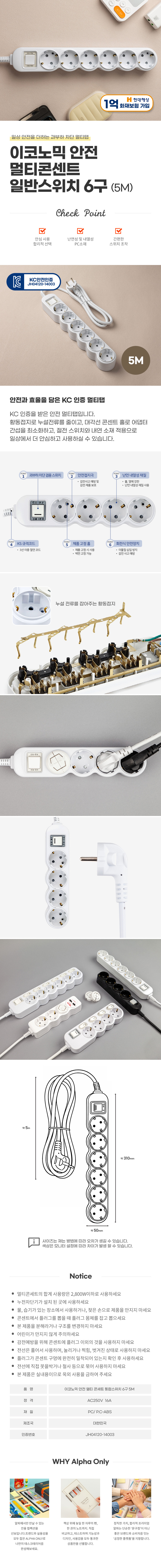 [알파] 이코노믹 안전 멀티탭 통합스위치 6구 5M