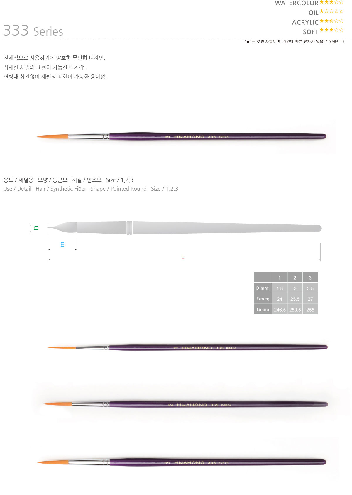 [화홍] 세필붓 333 인조모 (옵션선택)