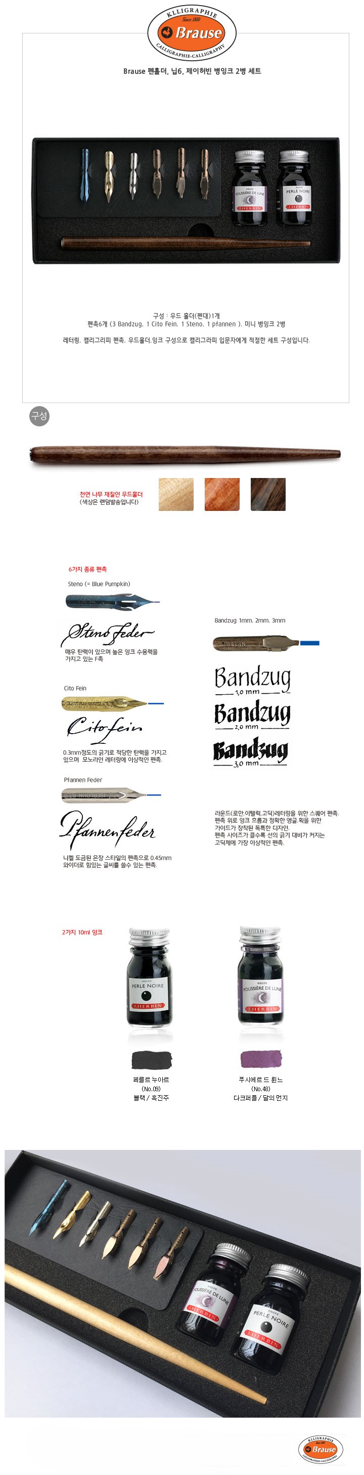 [브라우스]칼리그라피세트/29100T/펜대+펜촉6+잉크2