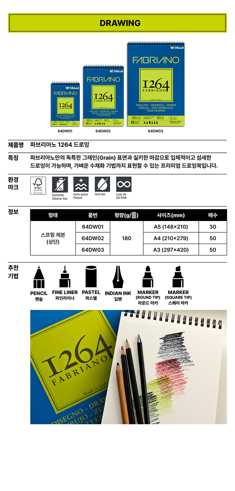 파브리아노 1264 드로잉패드 180g A3