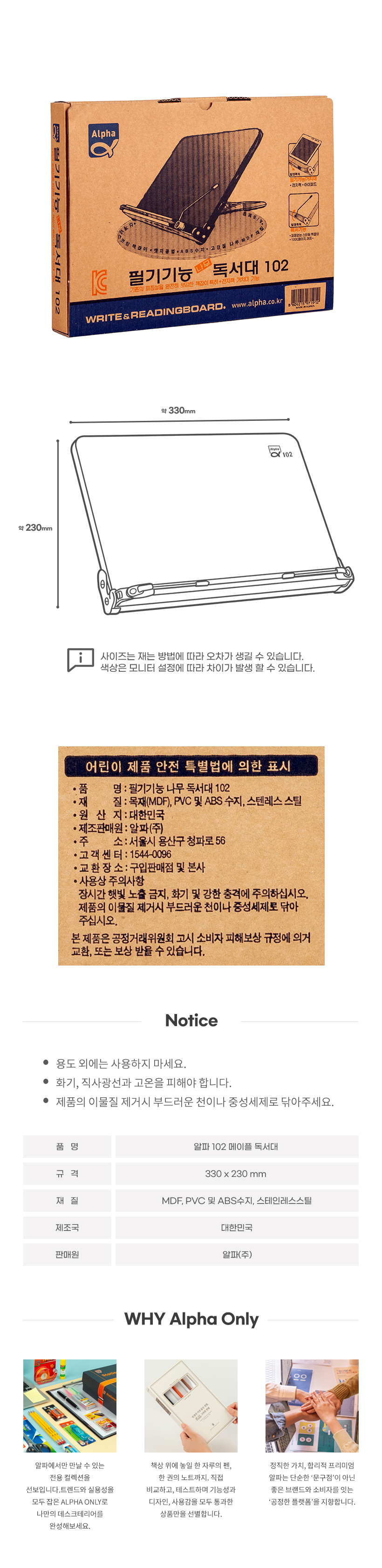 알파몰에서 판매되고 있는 모든 상품의 촬영 이미지, 편집 이미지, 문구, 상세페이지 내용의 저작권은 알파(주)에게 있습니다