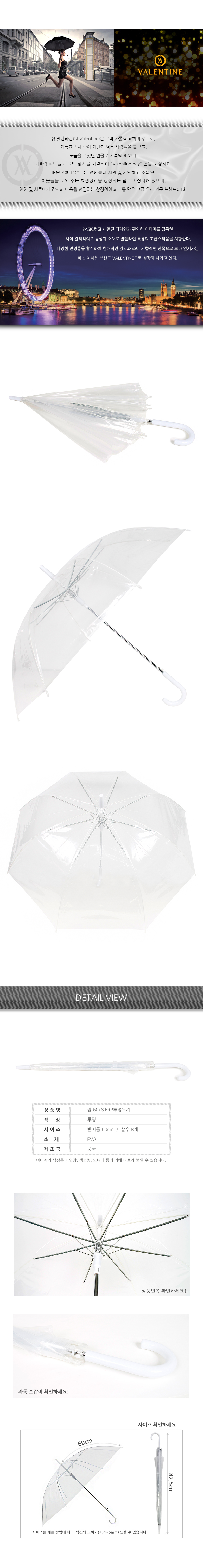 [발렌타인] 장우산 POE 60 자동 60*8cm 투명무지