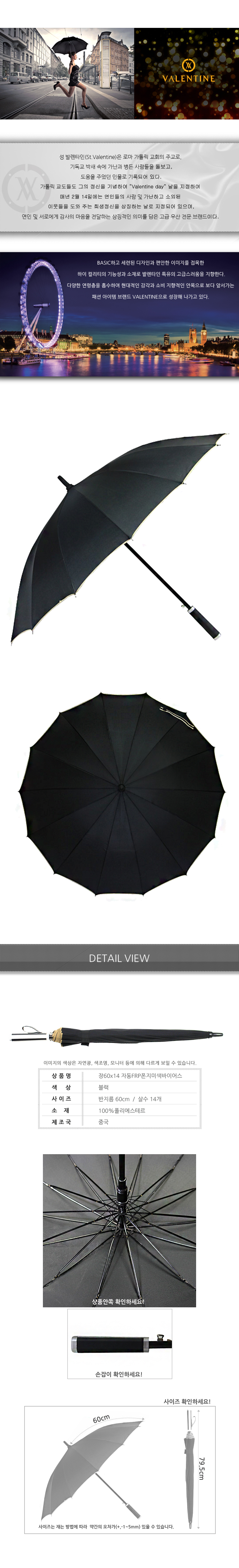 [발렌타인] 장우산 자동60 미색바이어스 IK-F6-036 60*14cm 블랙