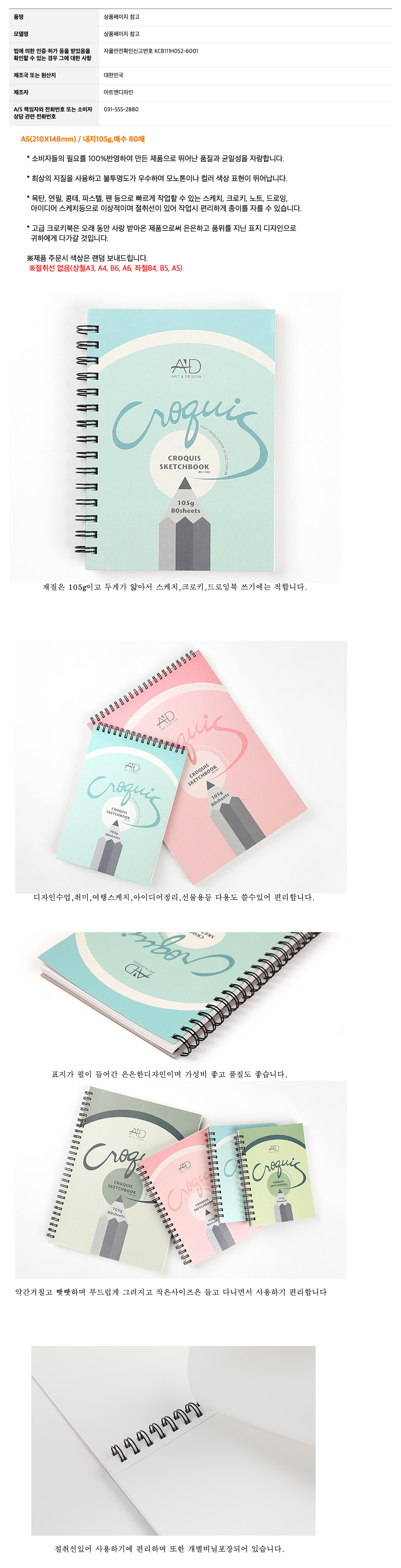 아트앤디자인 고급 크로키북 B5 105g/m2 좌철