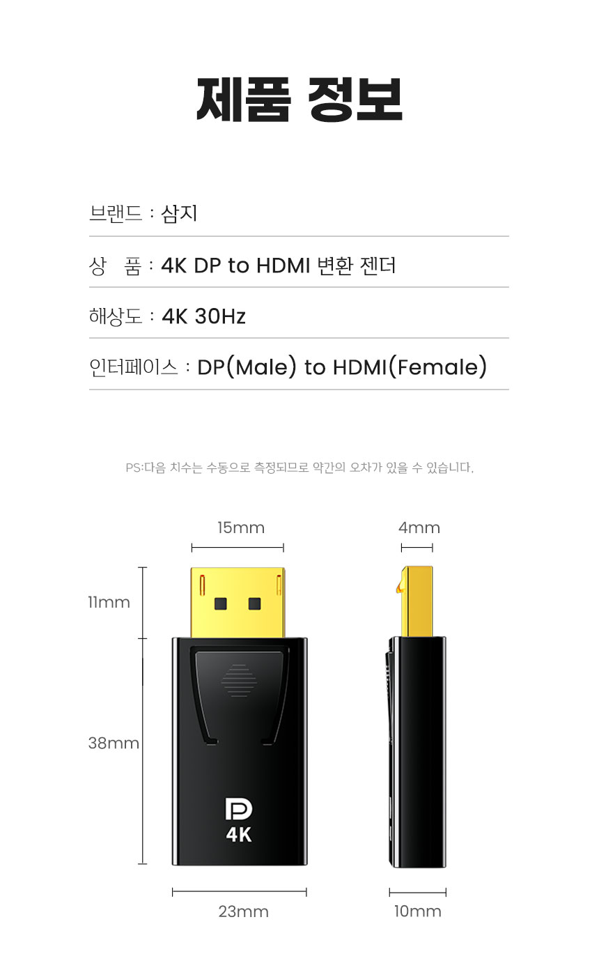 [1099494] [삼지] DP to HDMI 변환 젠더
