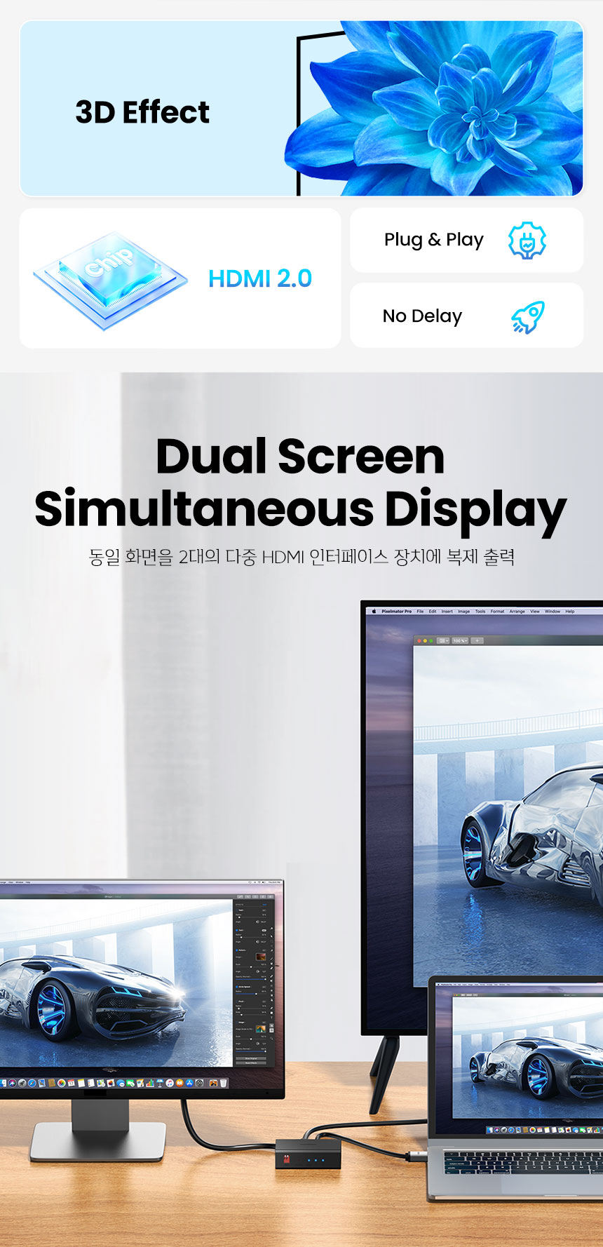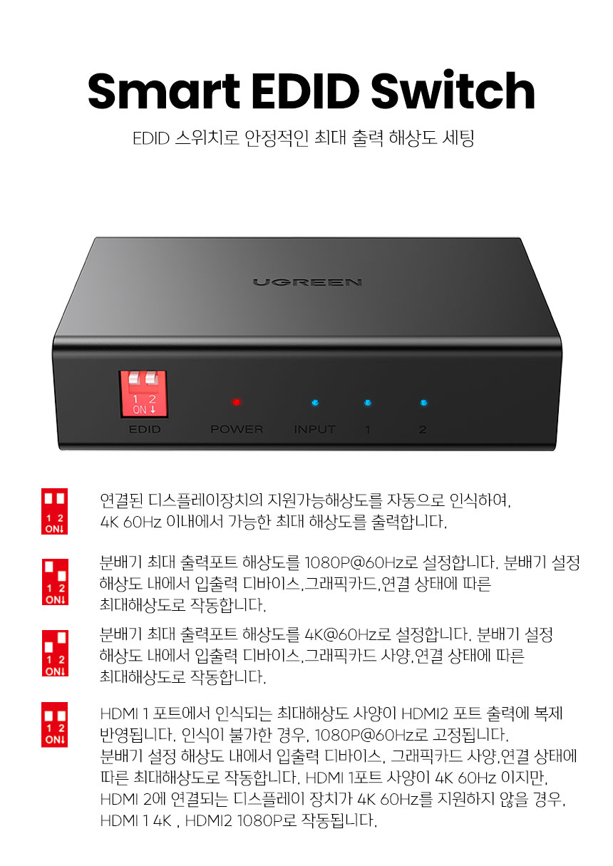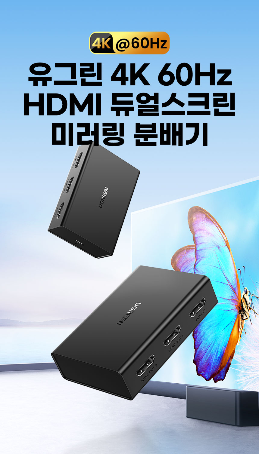 [유그린] 4K 60Hz HDMI 듀얼스크린 미러링 분배기