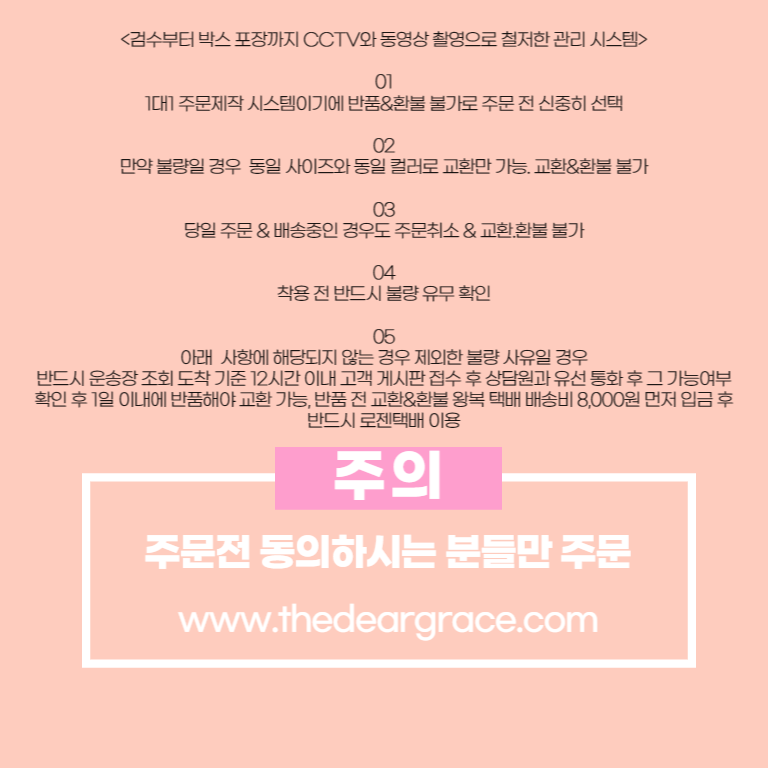 상품하자 이외 사이즈, 색상교환 등 단순 변심에 의한 교환/반품 배송비는 고객부담
