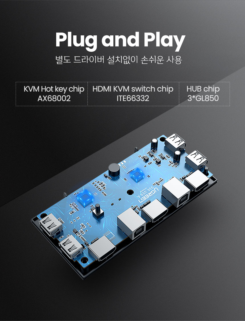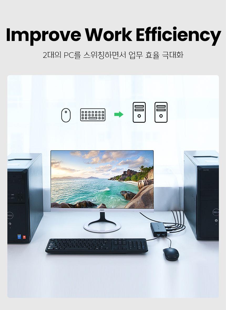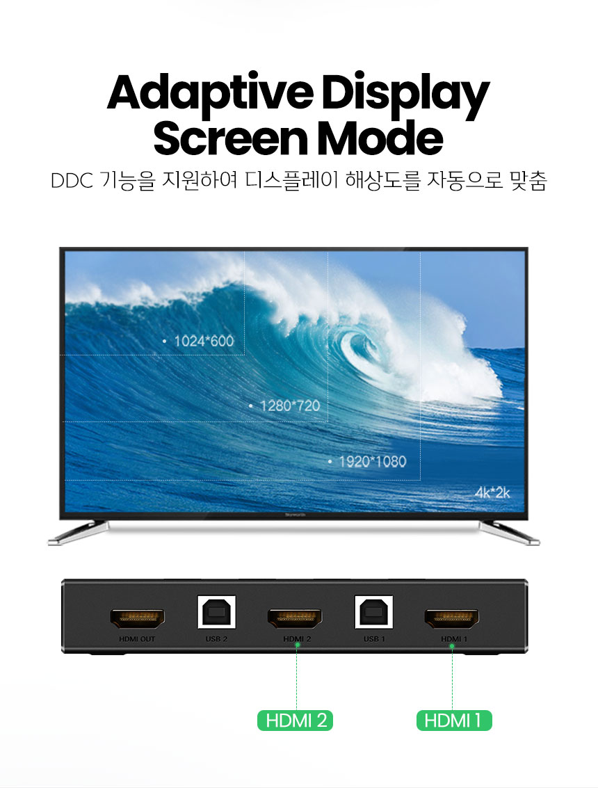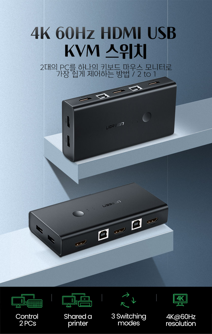 [유그린] HDM KVMI스위치 2:1 USB 케이블포함