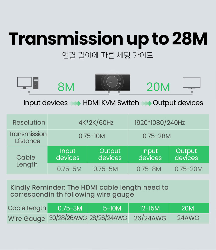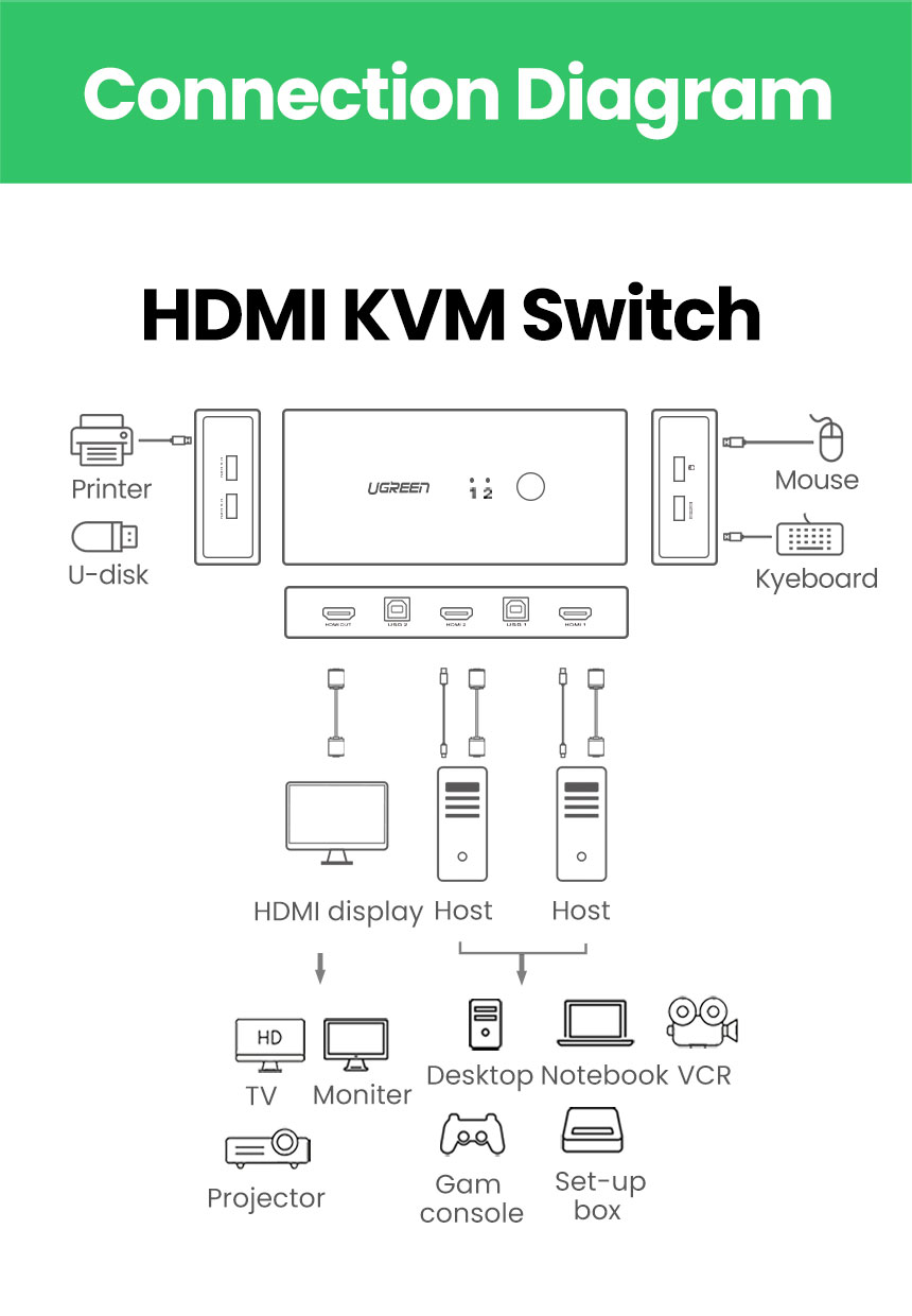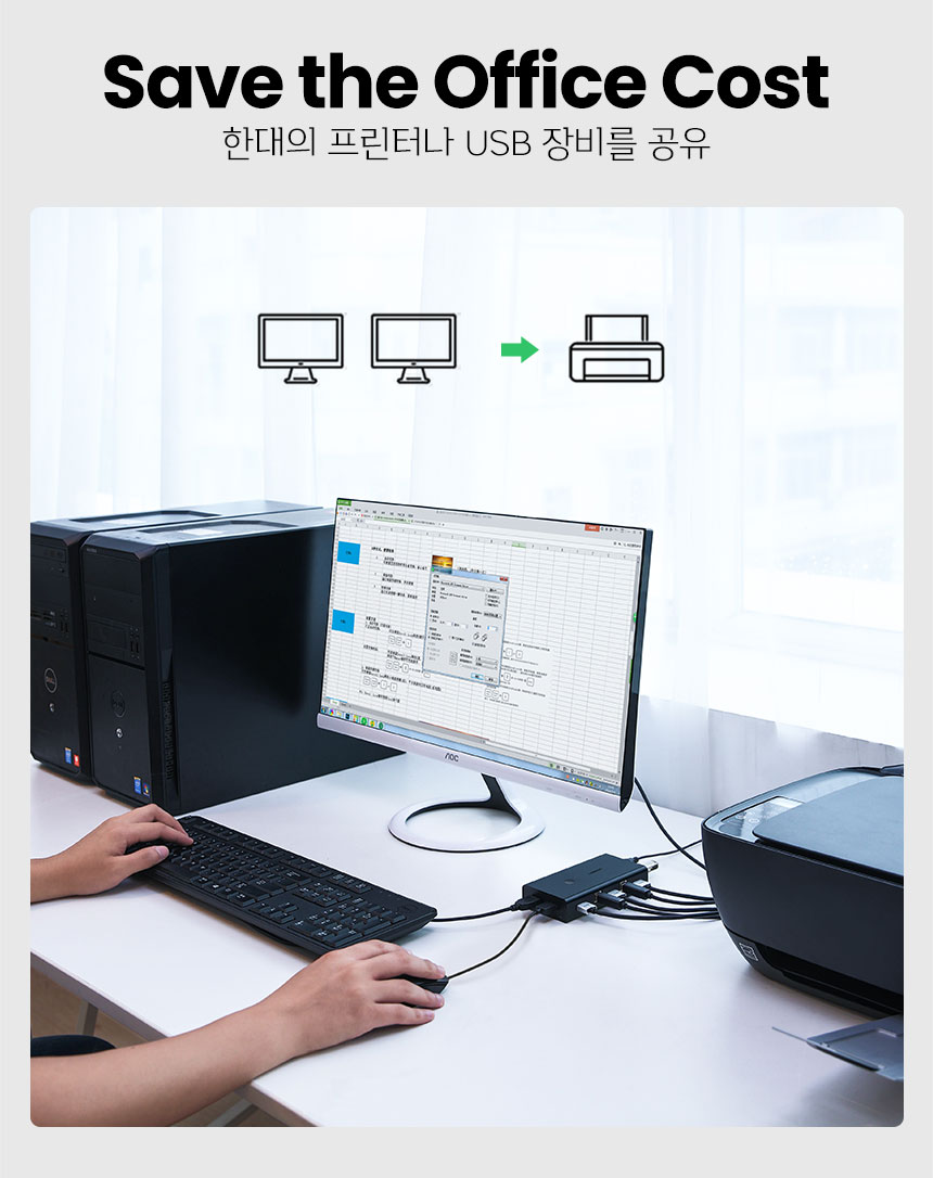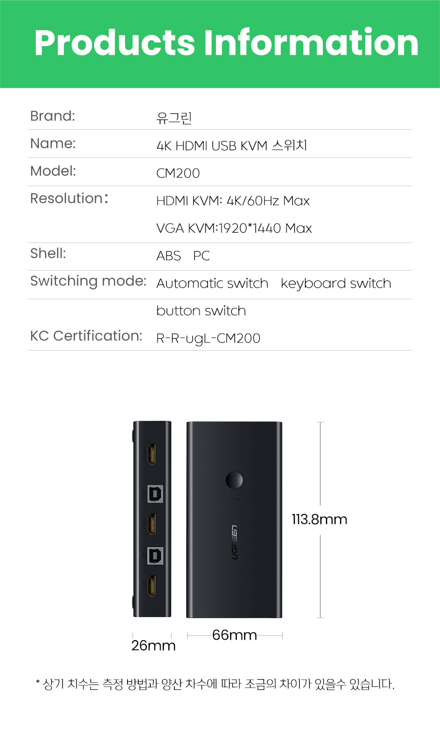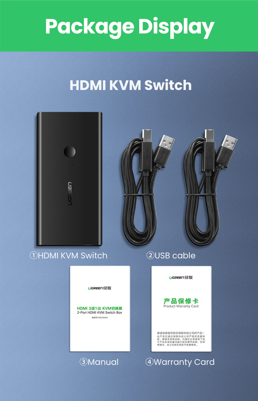 [유그린] HDM KVMI스위치 2:1 USB 케이블포함