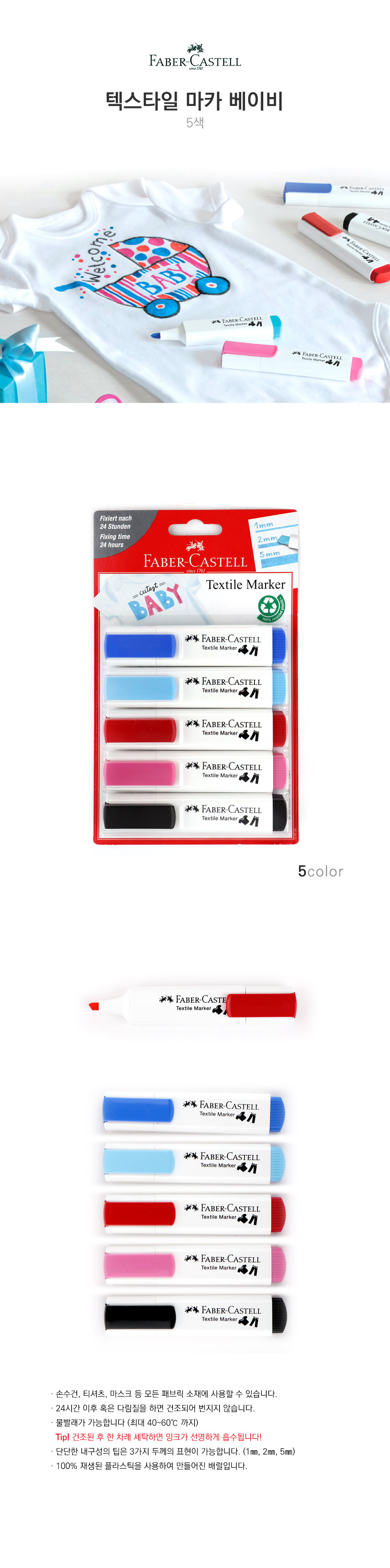파버카스텔 텍스타일마카 패브릭마카5색 베이비