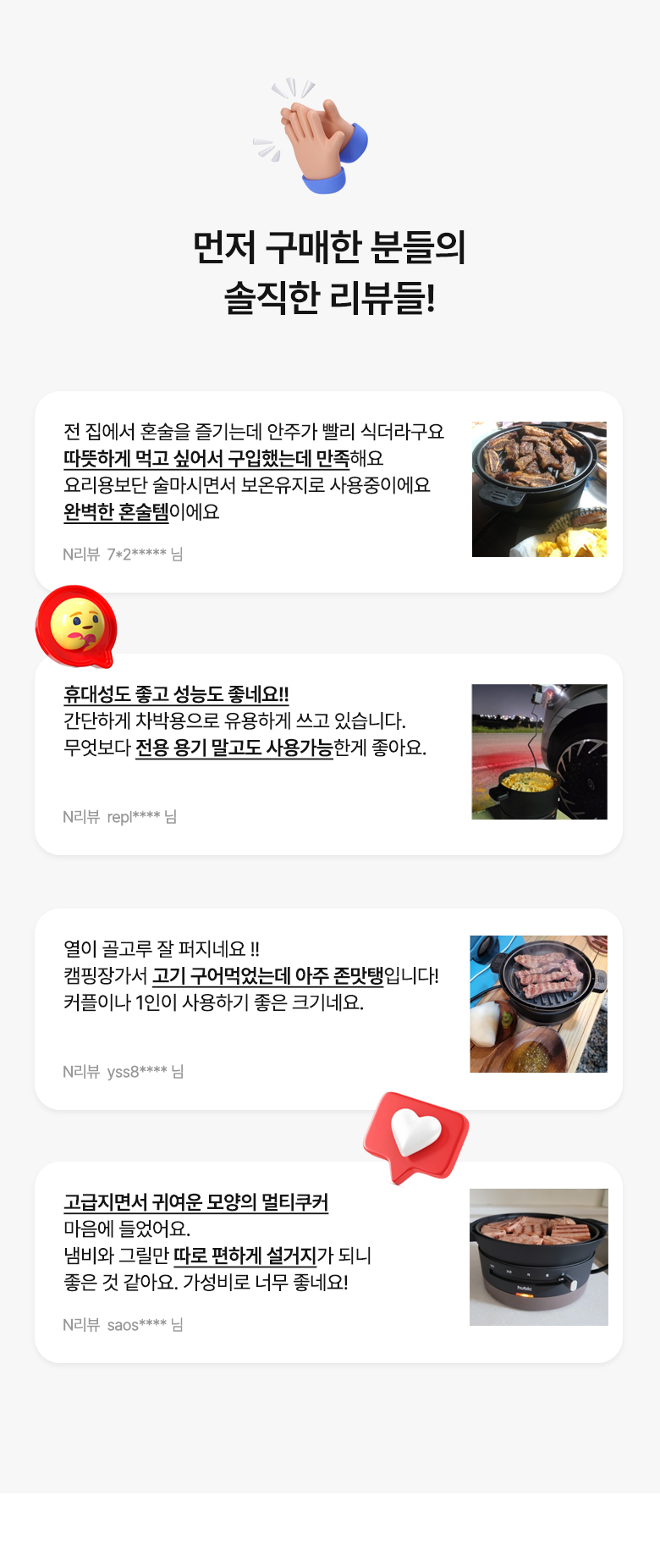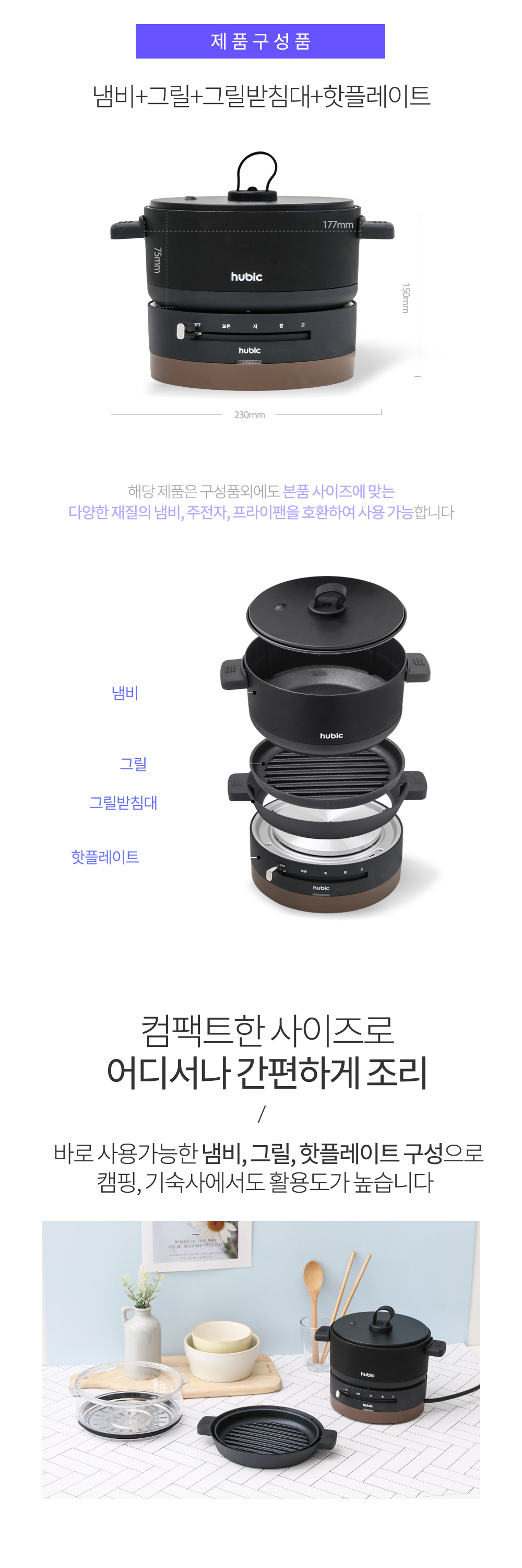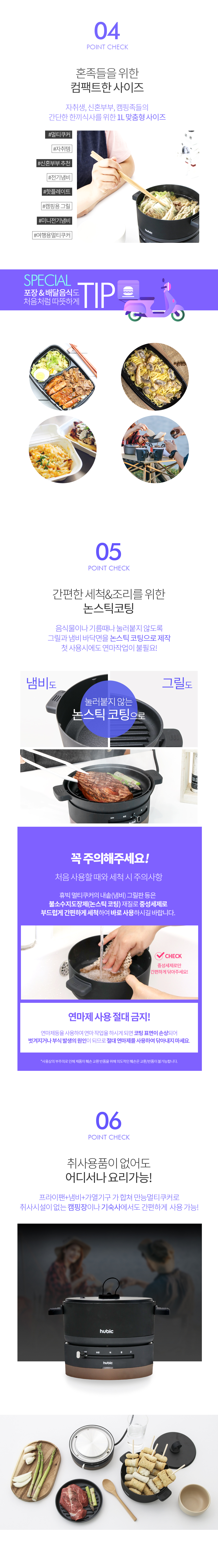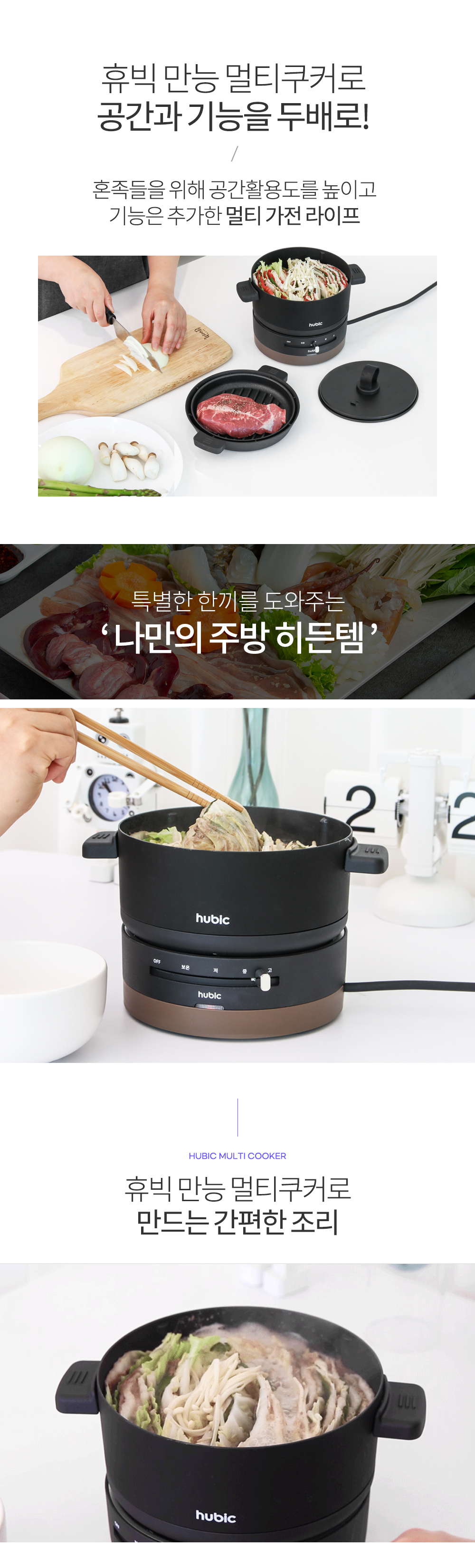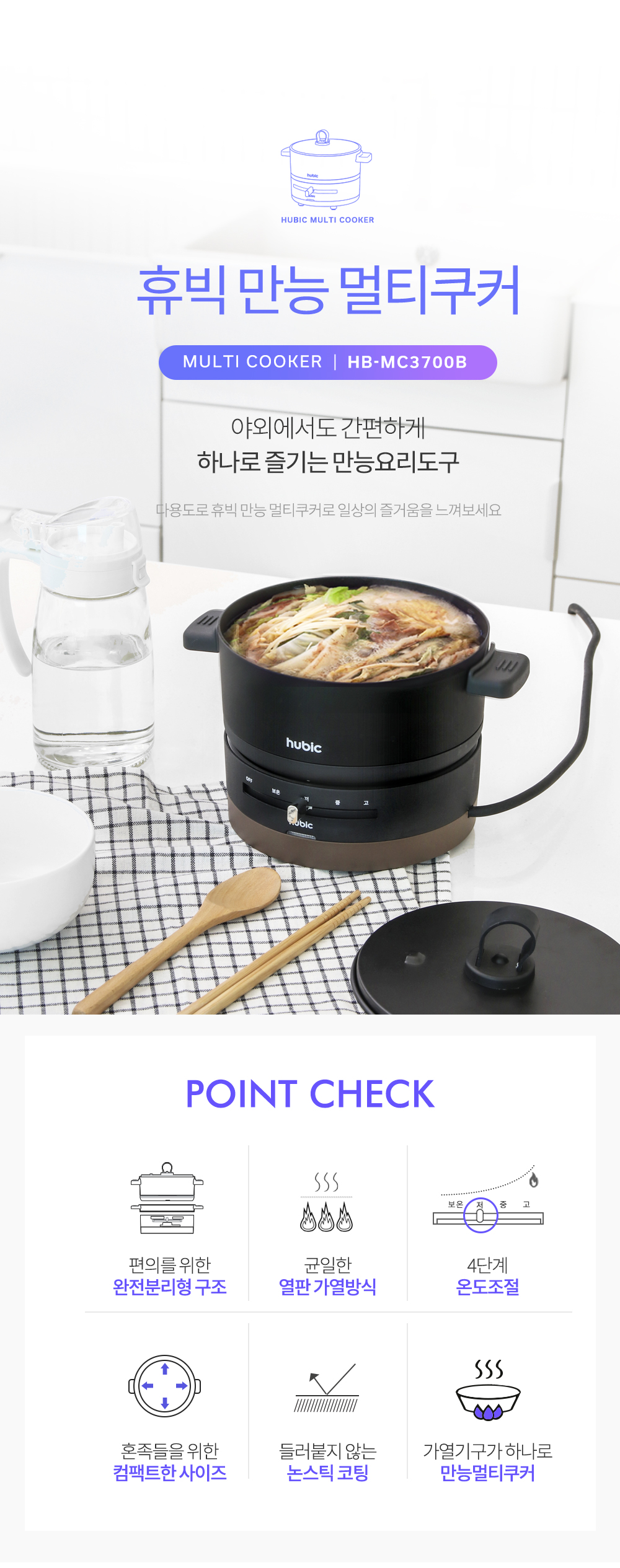 휴빅 4단계 조절 올인원 멀티쿠커 전기냄비 혼요 혼술 캠핑 전기그릴 HB-MC3700B