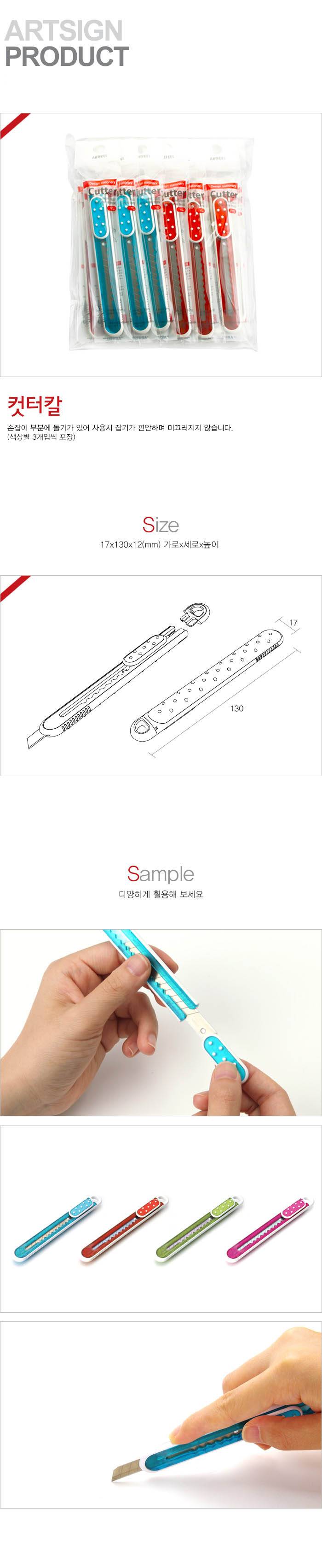 [아트사인] 컷터칼 4320 (17*130*12/12입/파랑,빨강,초록,분홍)