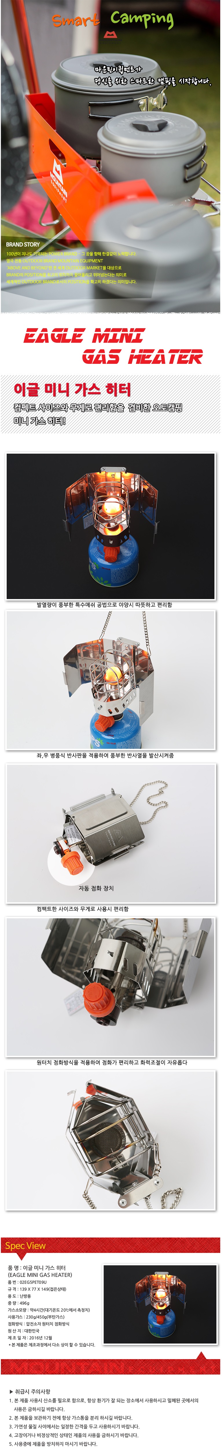 [마운 이큅먼트] 이글 미니 가스히터 난방용 오토캠핑 Eagle mini gas heat