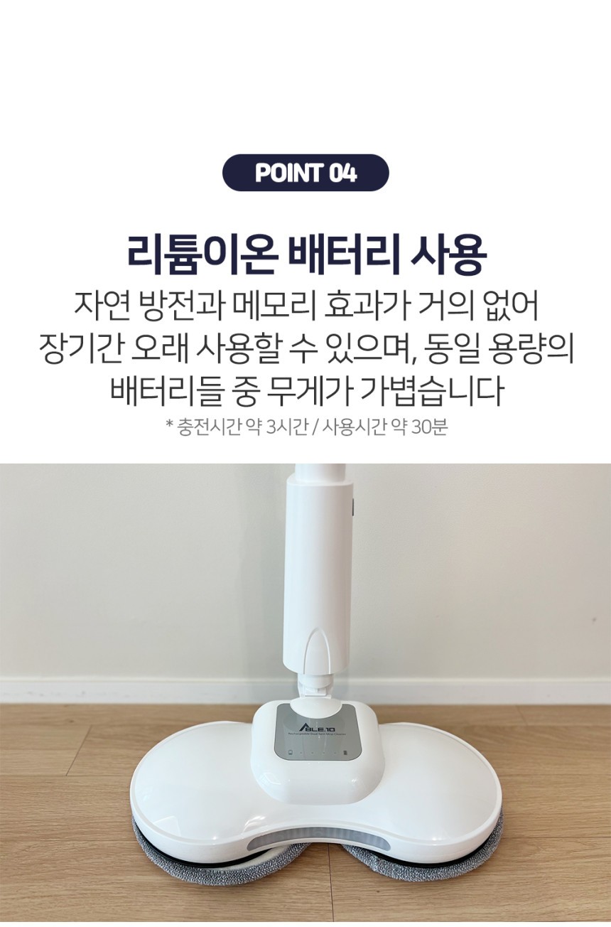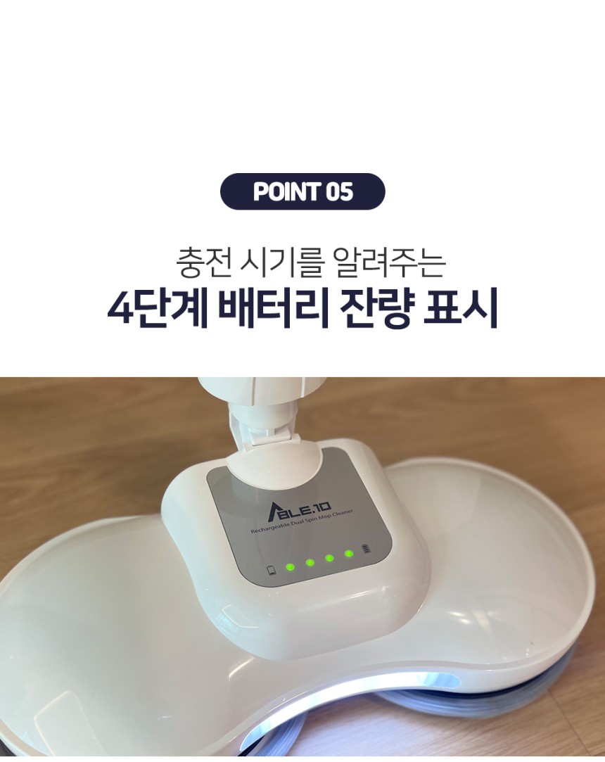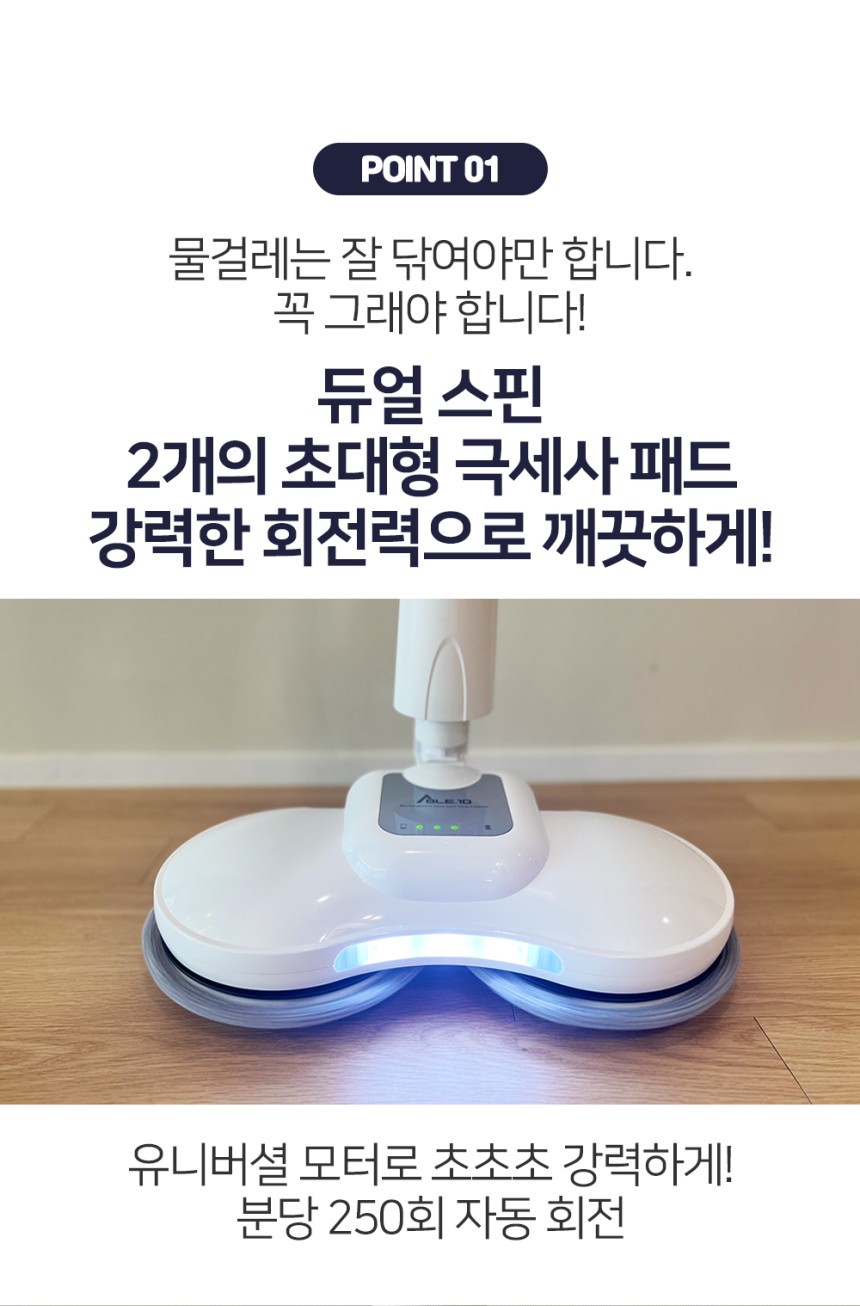 [에이블텐] [국내제조] 듀얼스핀 무선 물걸레 청소기+세척통