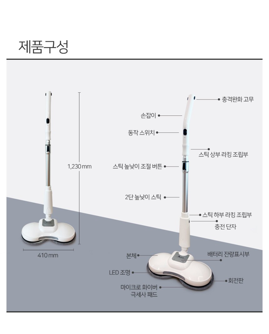 [2012363] [에이블텐] [국내제조] 듀얼스핀 무선 물걸레 청소기+세척통