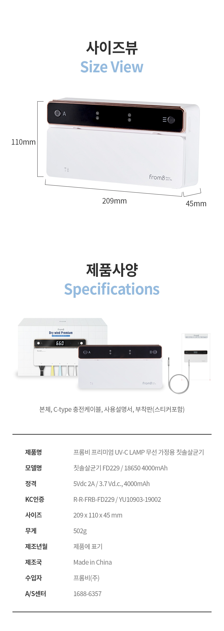 [프롬비] UV-C LAMP 무선 가정용 칫솔살균기 FD229 "