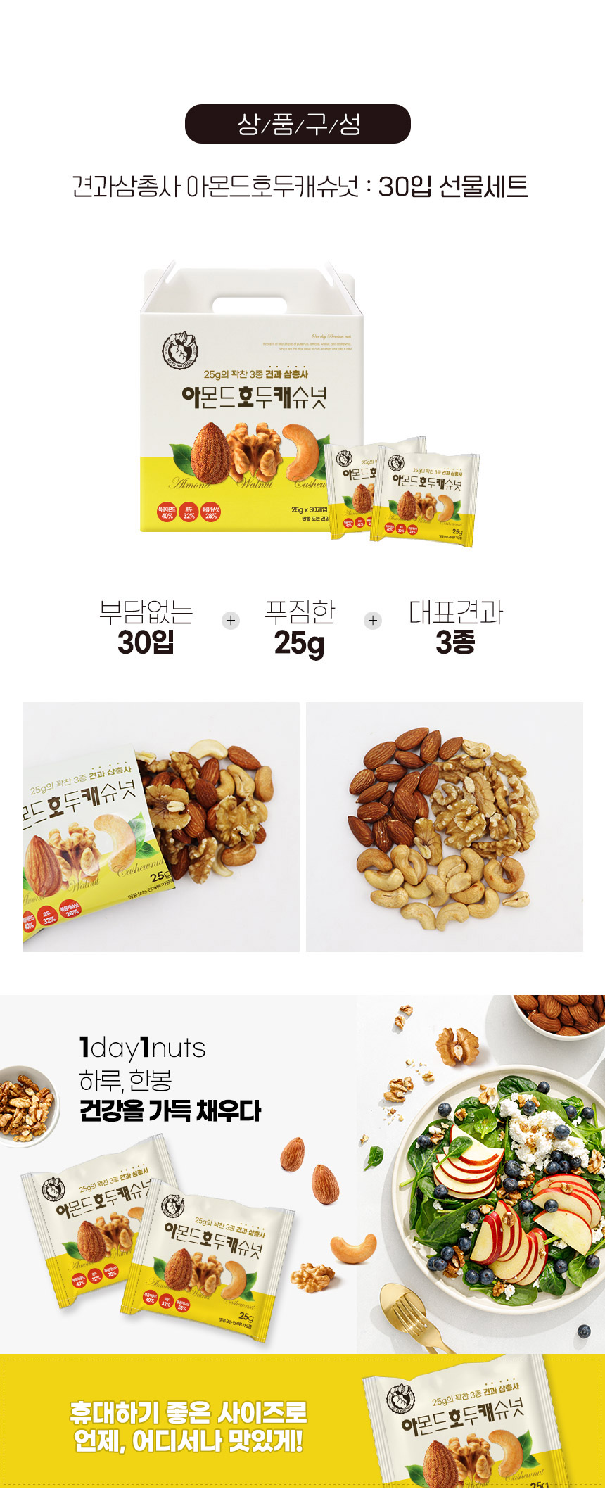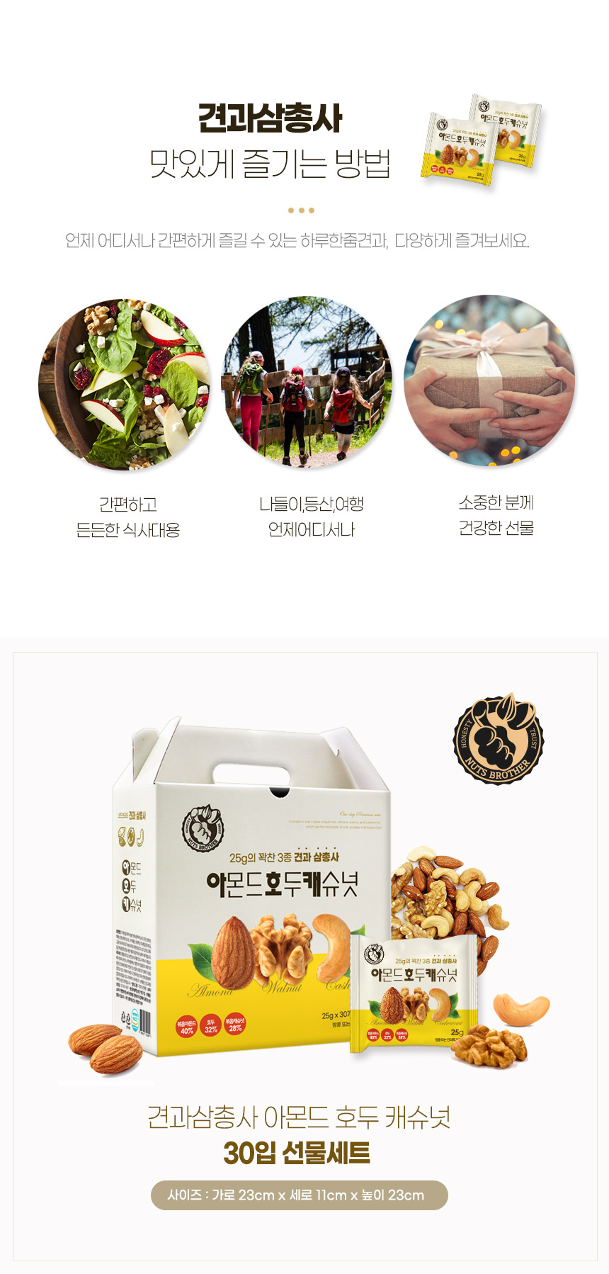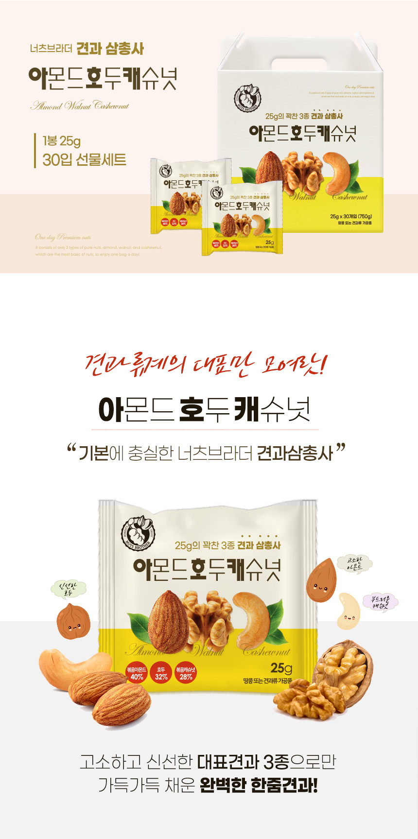 견과삼총사 아몬드호두캐슈넛 25g 30입 선물세트