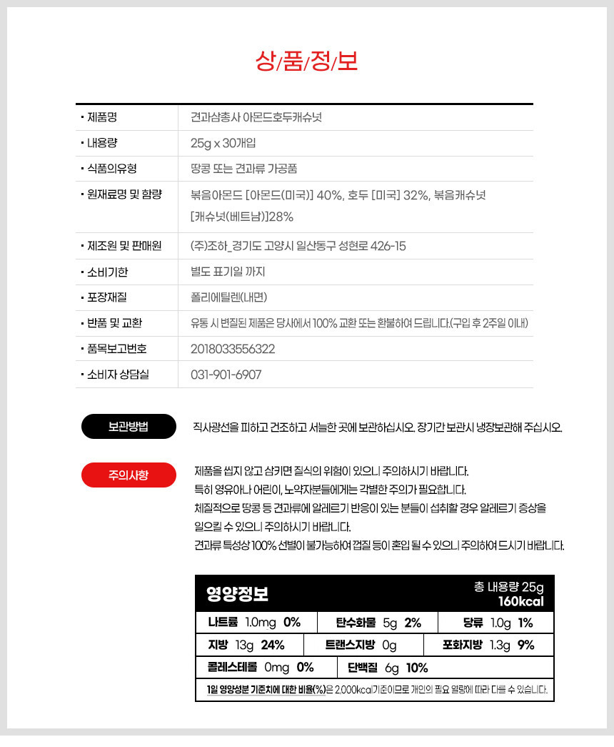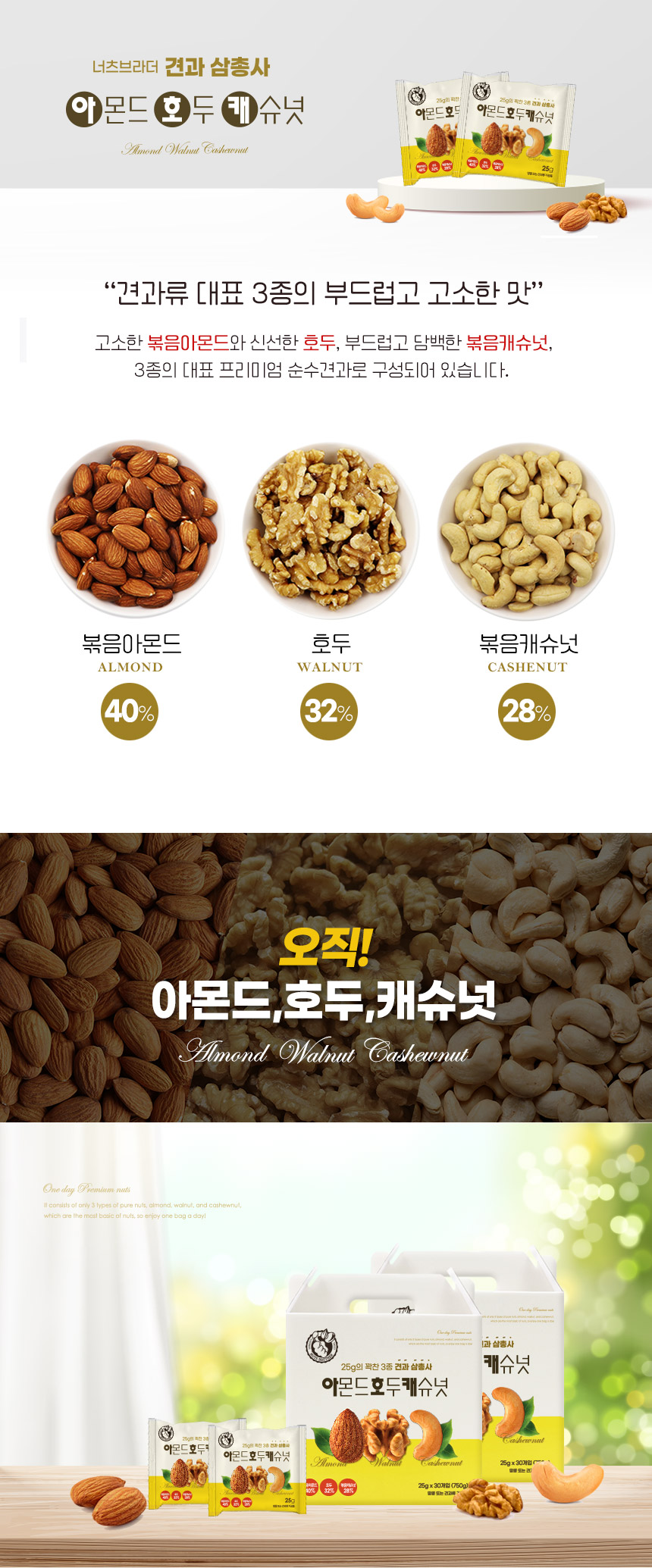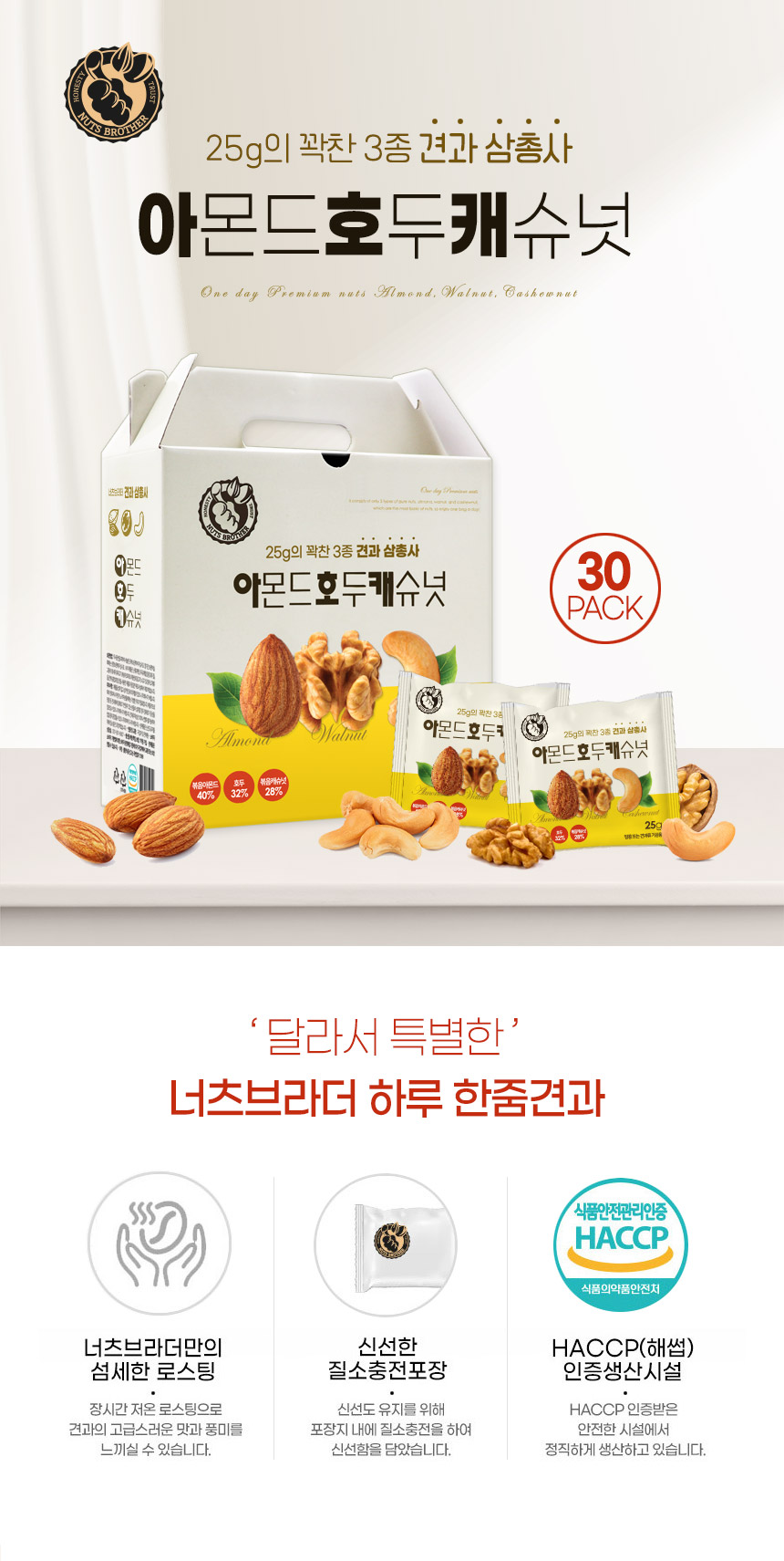 견과삼총사 아몬드호두캐슈넛 25g 30입 선물세트