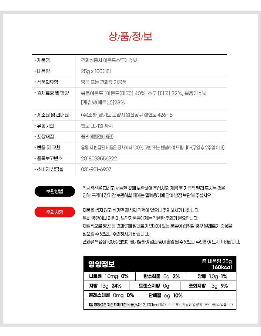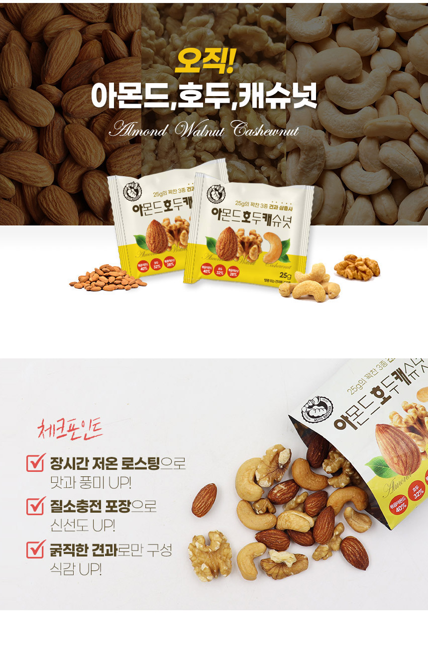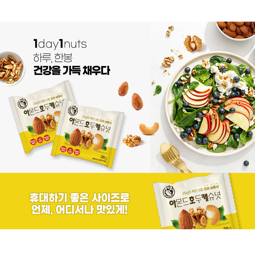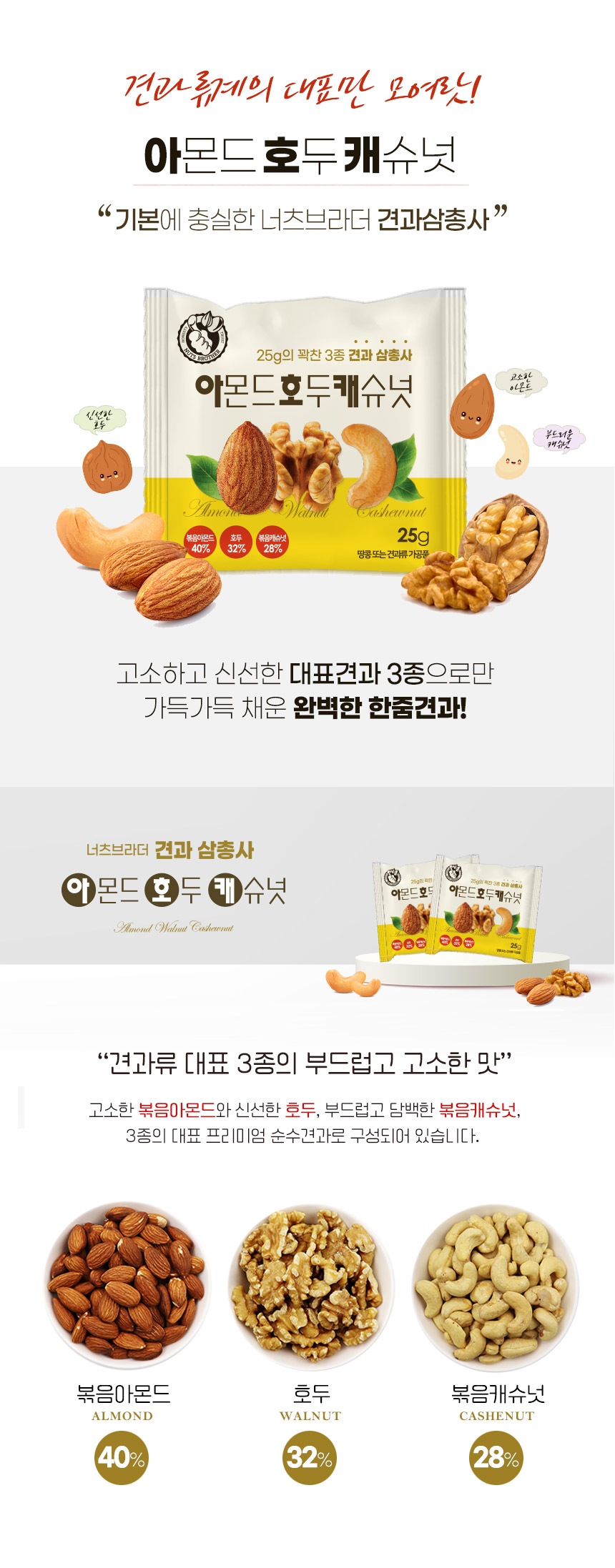 견과삼총사 아몬드호두캐슈넛 25g 100입 선물세트