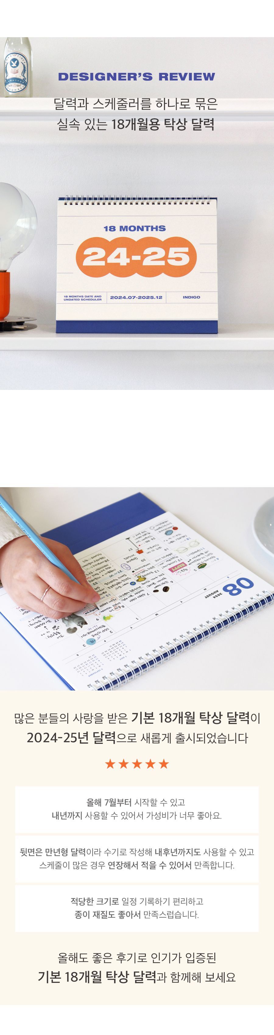 [인디고] (24-25) 기본 18개월 탁상 달력 (24년 7월25년 12월)