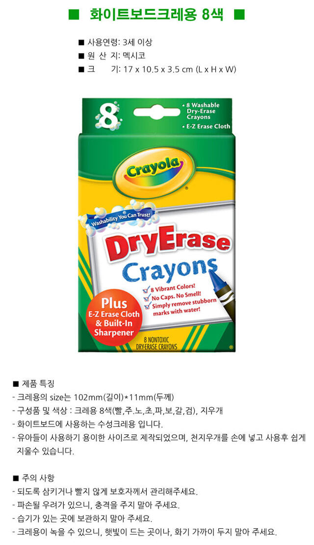 [크레욜라]크레용세트8색/기능성/화이트보드용