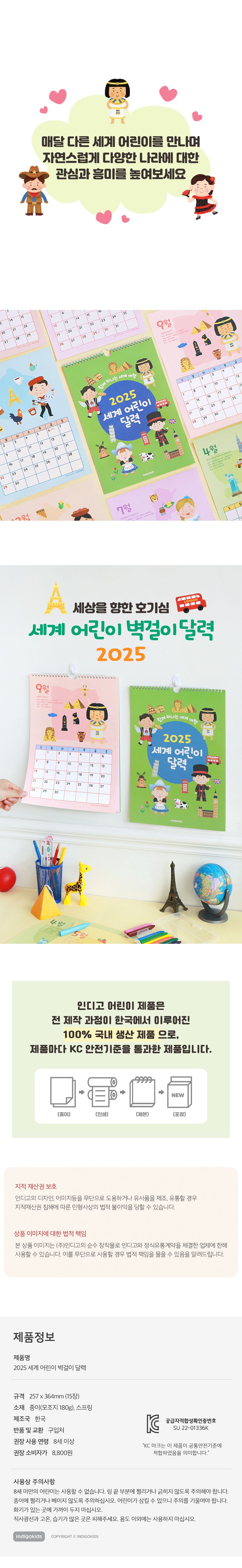 품명 및 모델명 : 2025 세계 어린이 벽걸이 달력