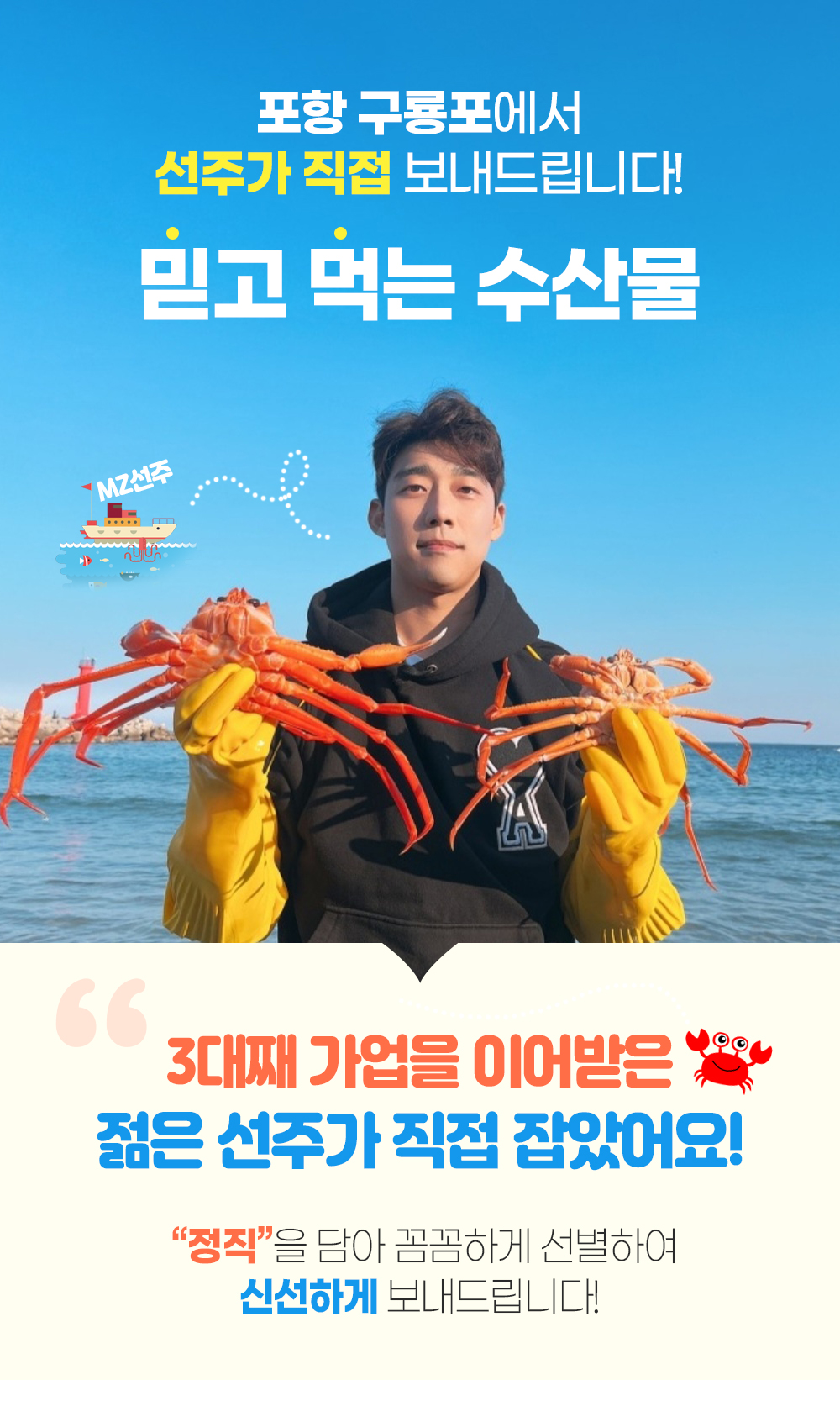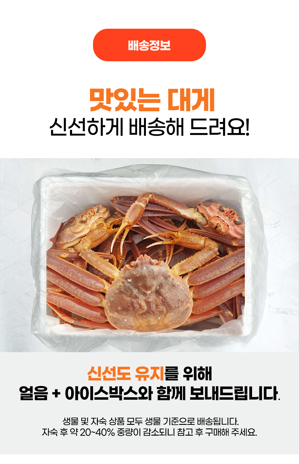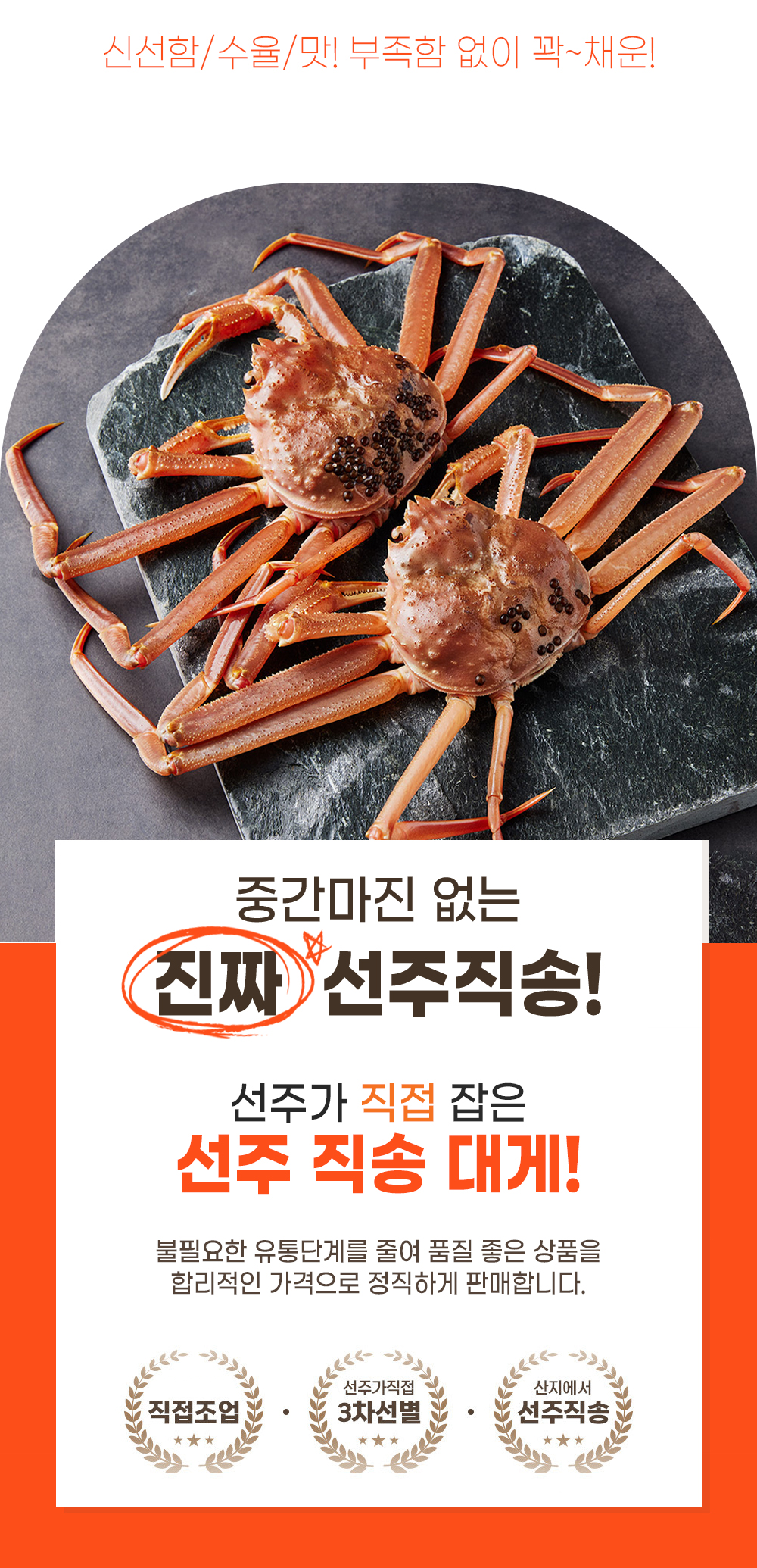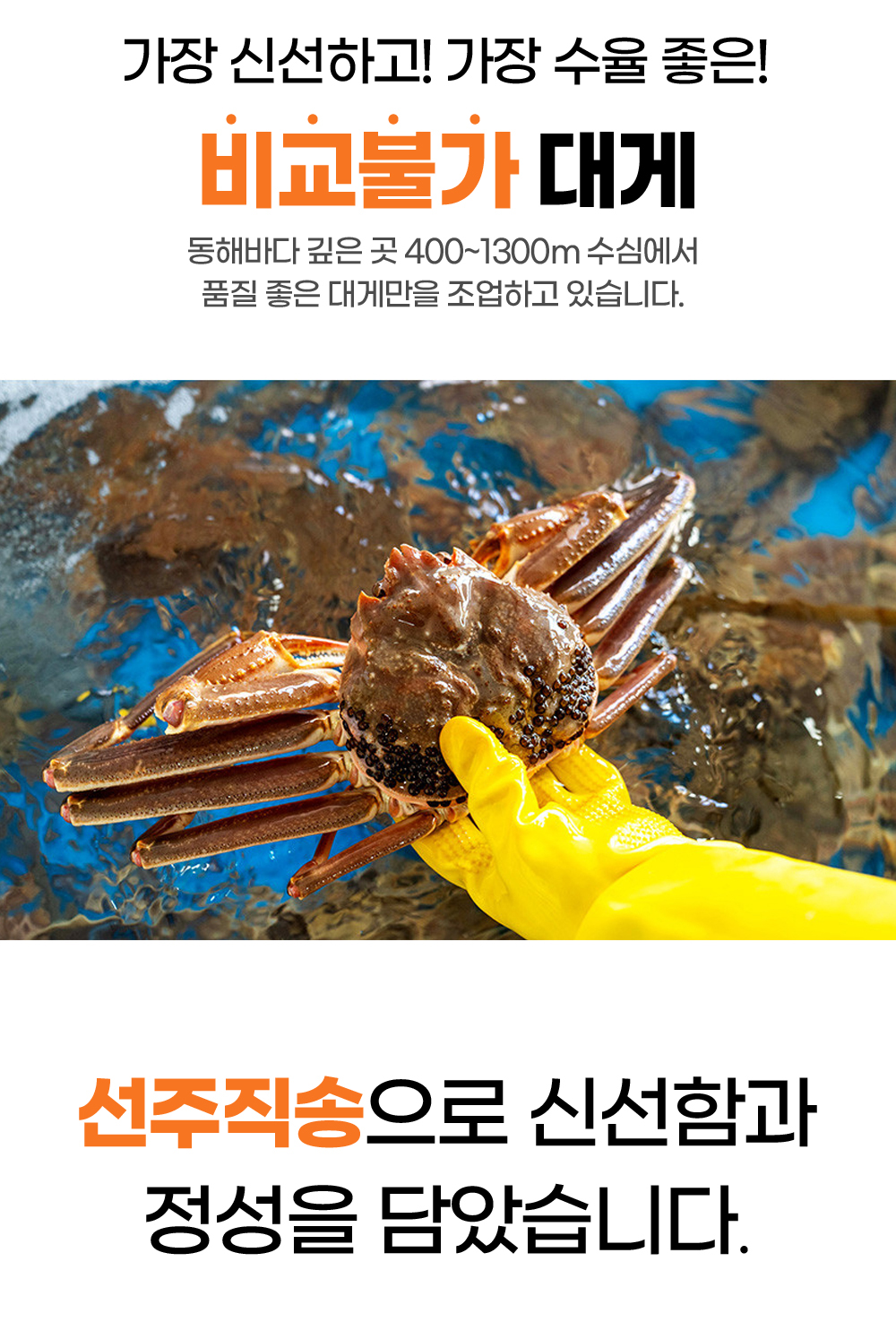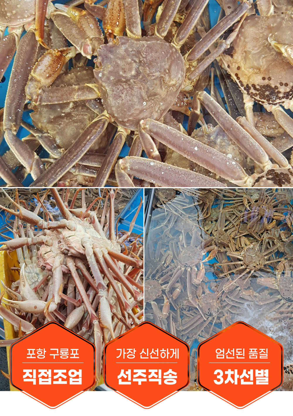[준박달대게 대 3마리] 선주 직배송 포항 구룡포 제철 대게 붉은 대게 생물 대게 수율 80%