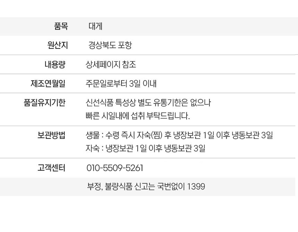 제조연월일(포장일 또는 생산연도) / 유통기한 : 제조연월일(포장일 또는 생산연도):주문일로부터 3일이내 / 유통기한:신선식품이기에 가능한 빠른 섭취