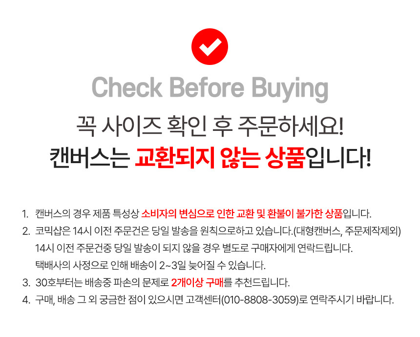 • 인쇄 혹은 주문제작 상품의 경우, 배송기간이 최장 7일~10일 정도 소요될 수 있습니다