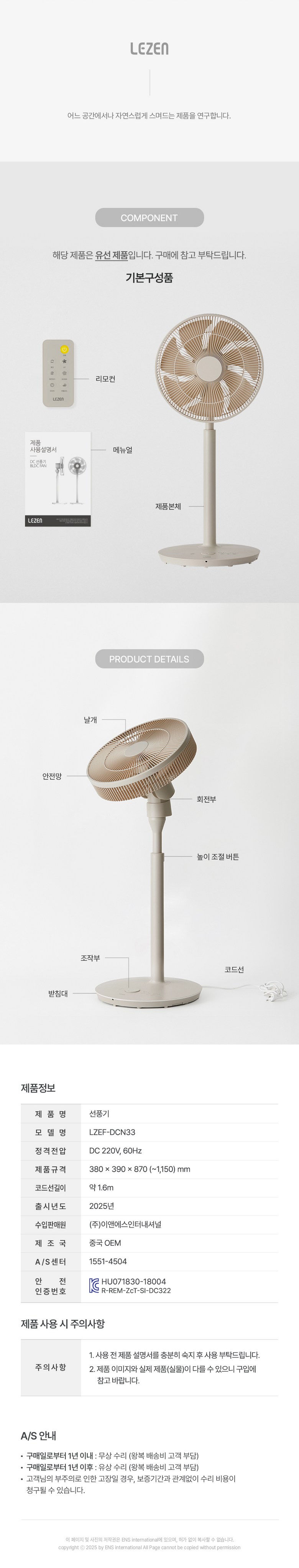 [LEZEN] 르젠 14인치 BLDC 앱연동 리모컨 선풍기 샌드베이지 LZEF-DCN33