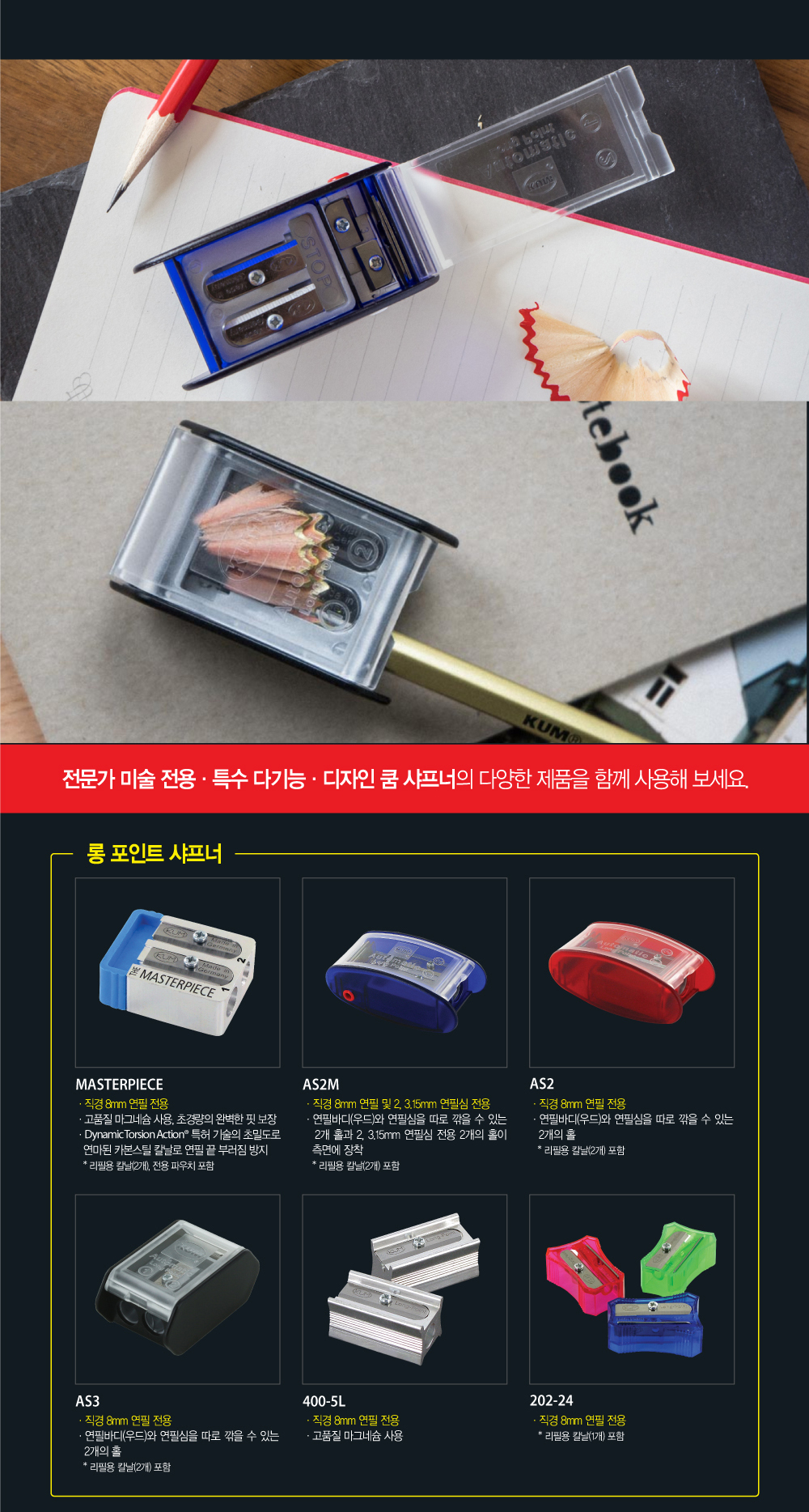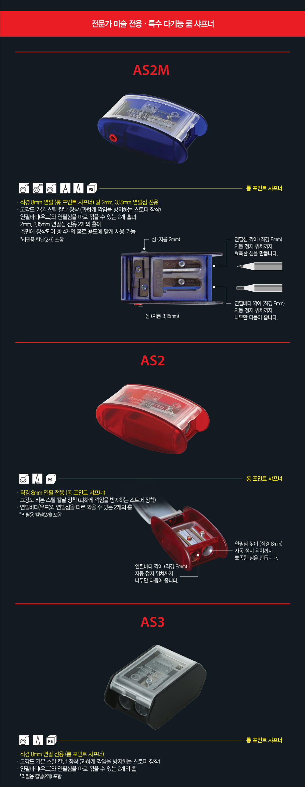 KUM 연필깎이 2구 롱포인트 샤프너 8mm연필 전용 /AS3 Automatic