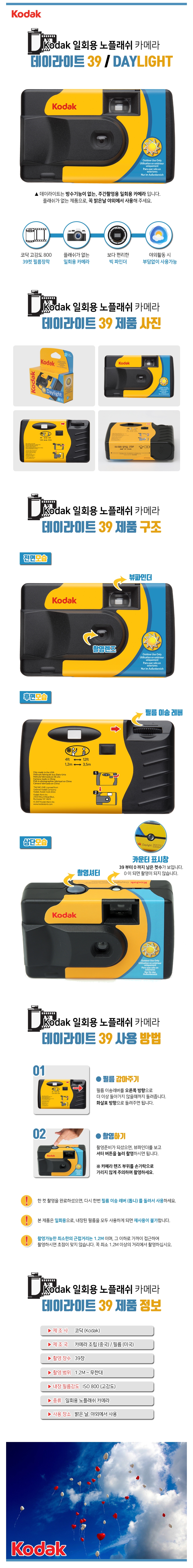 [코닥] 일회용 카메라 데이라이트 (39장)