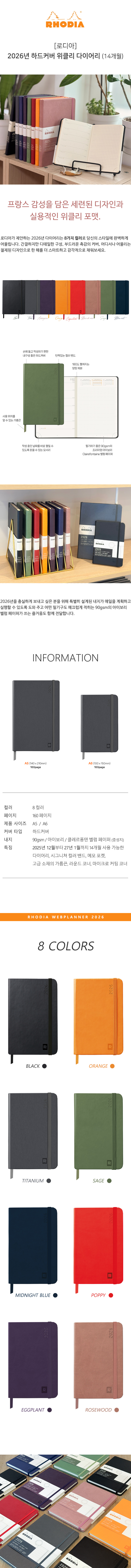 [2259031] 로디아 2026위클리다이어리하드커버RD194731C TitaniumA5