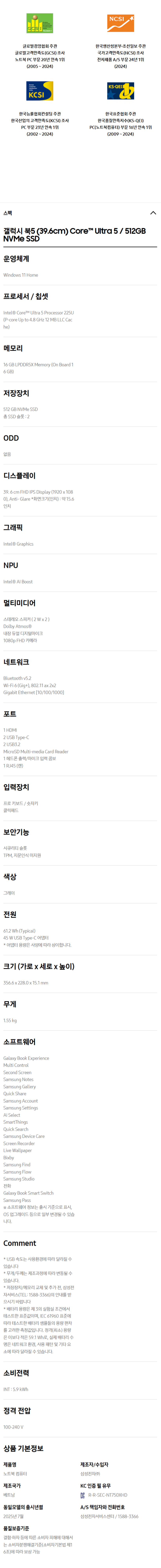 [삼성]갤럭시북5/NT750XHD-KC51G/그레이/