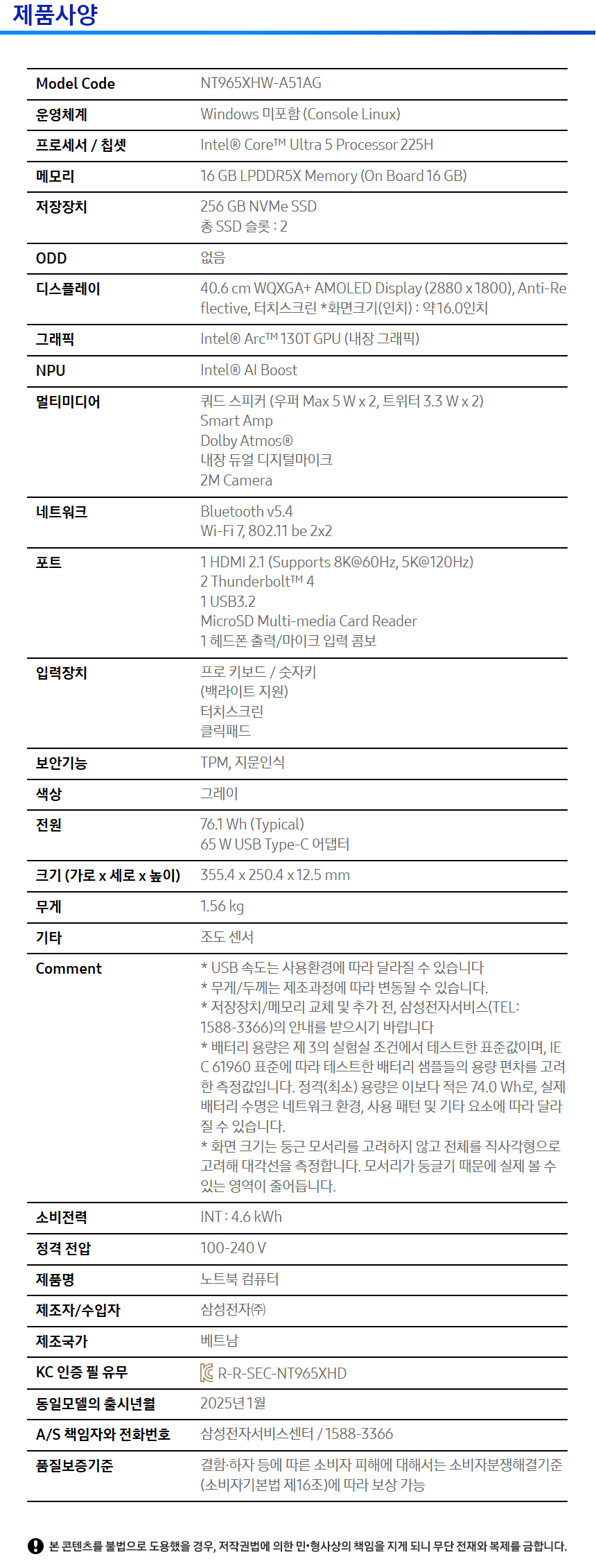 [삼성]갤럭시북5/프로H/NT965XHW-A51AG/그레이/