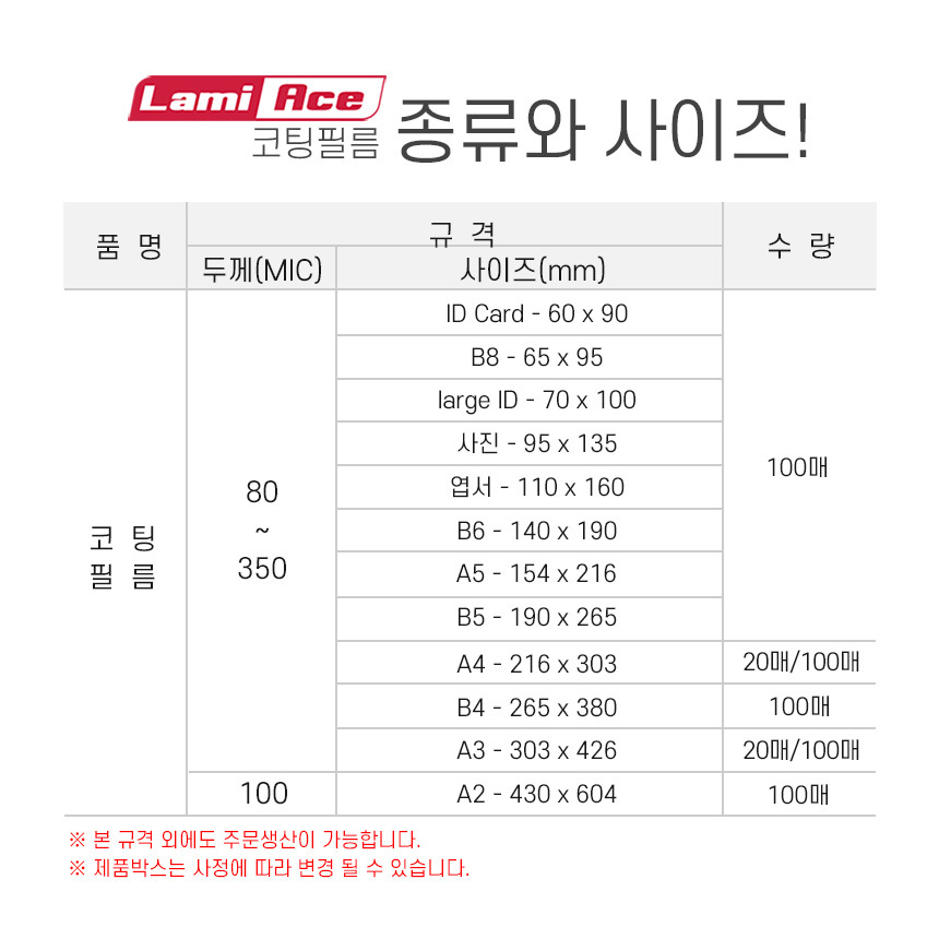 라미에이스 보급형 라미네이팅필름 코팅지 코팅필름 코팅용지 100MIC A4 50매