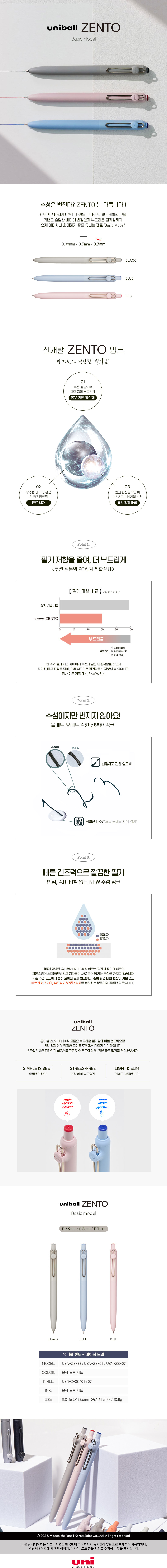유니 수성펜/유니볼/ZENTO베이직/UBN-ZS-07 블루/0.7mm