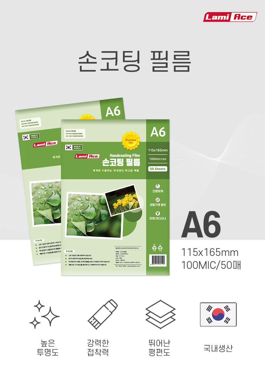 라미에이스 국산 최고급 손코팅필름 코팅필름 코팅지 A6 100MIC 50매