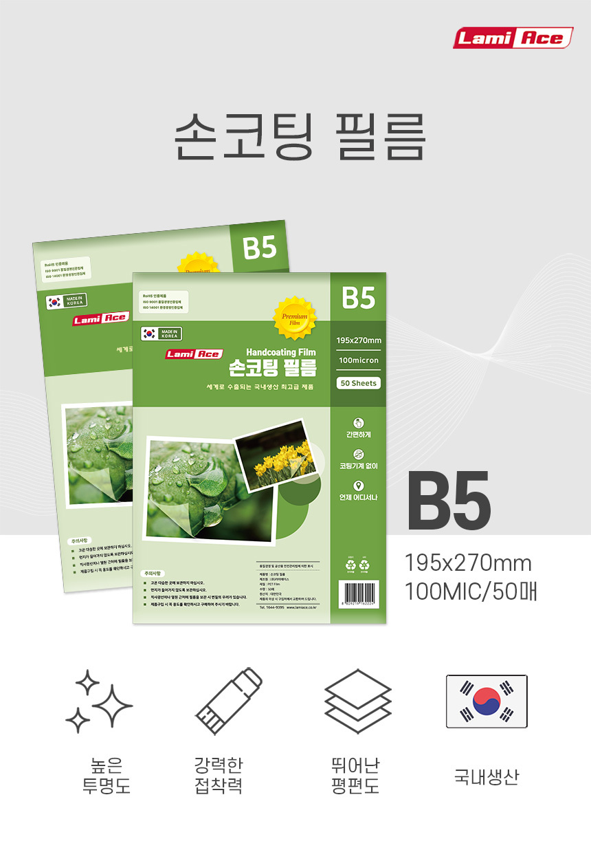 라미에이스 국산 최고급 손코팅필름 코팅필름 코팅지 B5 100MIC 50매