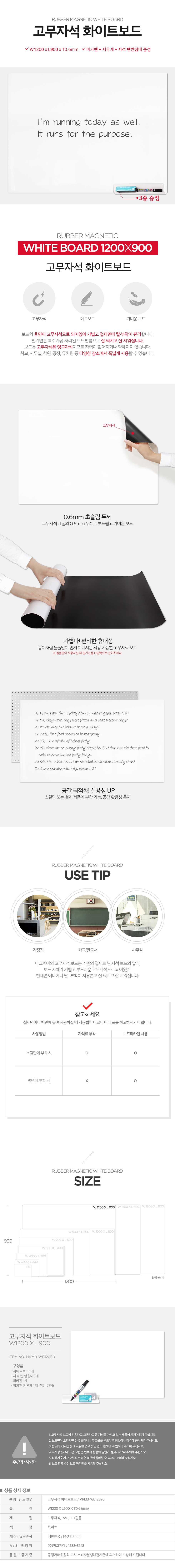 [마그피아] 고무자석화이트보드 MRMB-WB12090 (W1200*L900*T0.6)